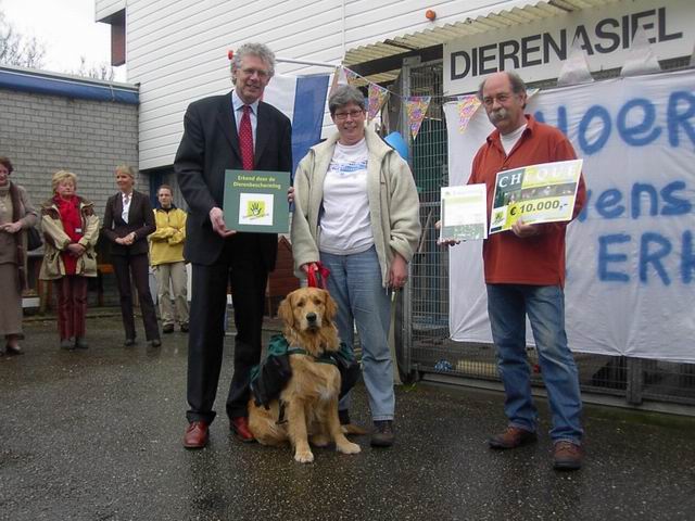Gisterochtend heeft de directeur van de Landelijke Dierenbescherming, de heer Wijnand van de Giessen, de officiële uitreiking verricht van de Erkenning aan Dierenasiel Stevenshage. Dit keurmerk is voor dierenasielen die voldoen aan de strenge eisen, zoals dat is vastgelegd in de erkenningsregeling dierenasielen. Carla van Viegen en Esther Majoor van de werkgroep Erkende Asielen van de Dierenbescherming waren op speciaal verzoek ook aanwezig, omdat zij zich in het bijzonder hebben ingespannen voor Stevenshage om de erkenning te krijgen.