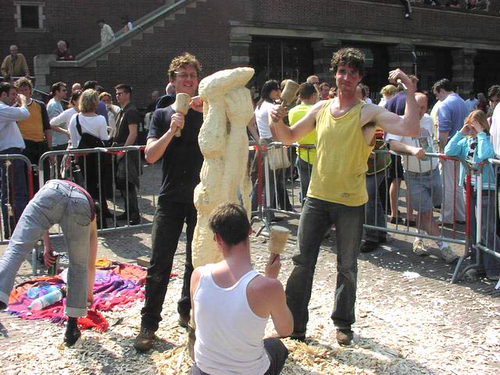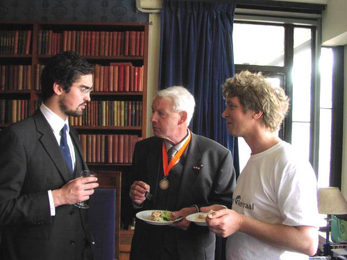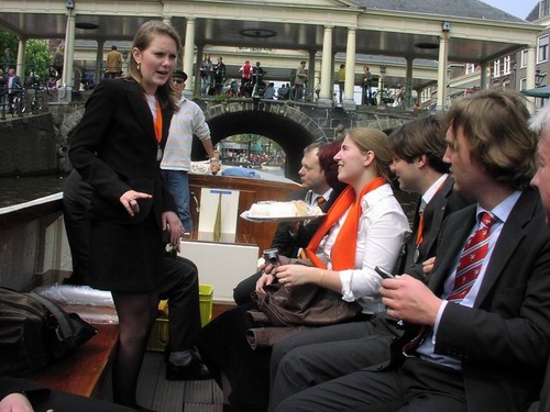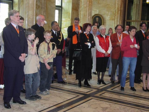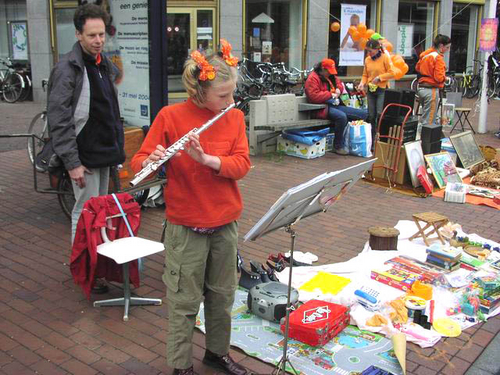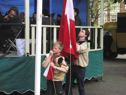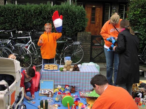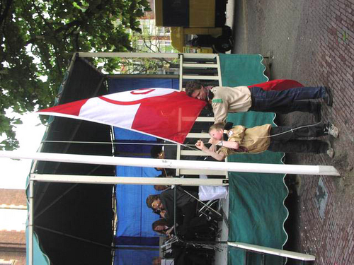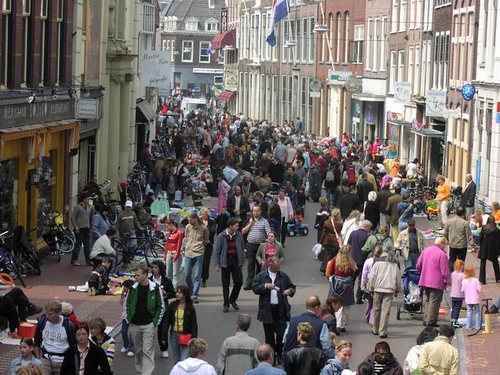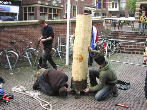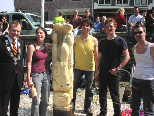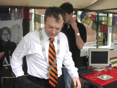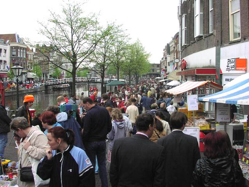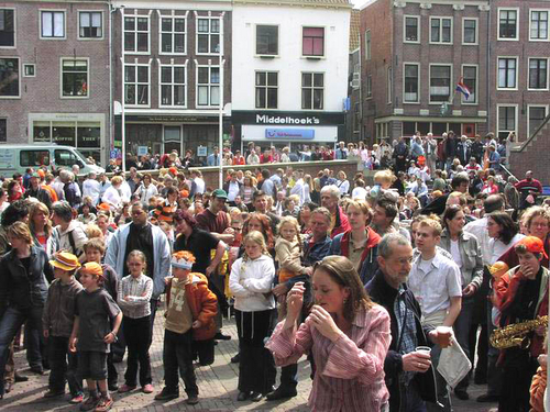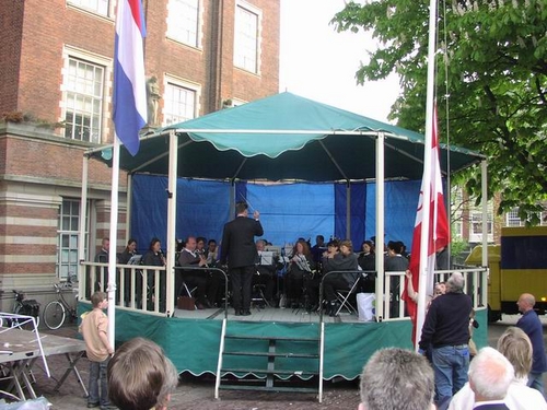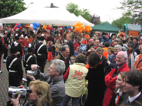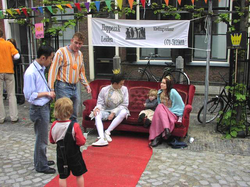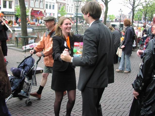 Koninginnedag begon in Leiden rond 8.45 uur met het hijsen van de Leidse en de Nederlandse vlag op het Stadhuisplein. Aansluitend vond er een korte bijeenkomst plaats in de burgerzaal waar voorzitter Bert van der Velde van de Vereniging Koninginnedag Leiden (VKL) en burgemeester Lenferink het woord tot de aanwezigen richtten. Van der Velde memoreerde dat hij nu voor het derde achtereenvolgende jaar met een nieuwe burgemeester Koninginnedag vierde. “Een traditie die we maar snel weer moeten afschaffen,” vond Lenferink op zijn beurt.