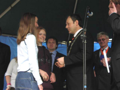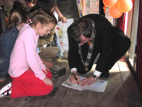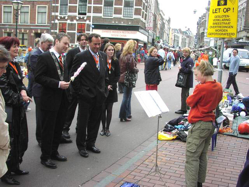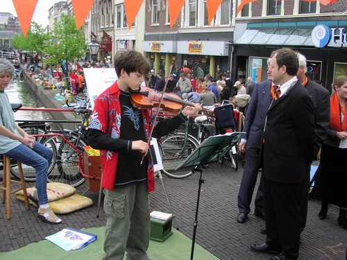 Vervolgens maakten het bestuur van de Vereniging Koninginnedag Leiden samen met burgemeester Lenferink een rondgang langs de activiteiten in het centrum en in de Professoren- en Burgemeesterswijk. Bij Minerva werden de prijzen uitgereikt van een tekenwedstrijd. Op het Stadhuisplein werden aansluitend de winnaars het het Jeugd muziekconcours ‘Het Gouden Petje’ bekendgemaakt. Daarna volgde nog een rondvaart door Leiden.