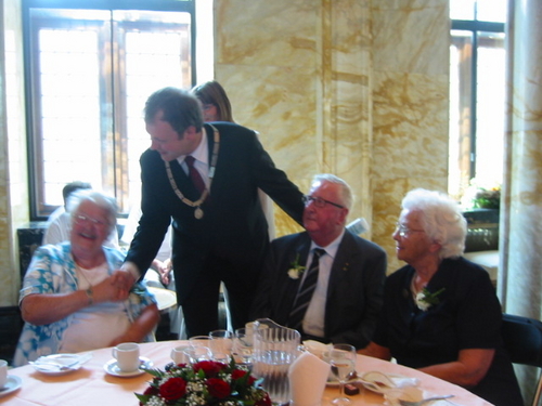 Burgemeester Lenferink feliciteerde samen met zijn echtgenote Marion de jubilerende bruidsparen. (Foto's: Frans Lardee).
