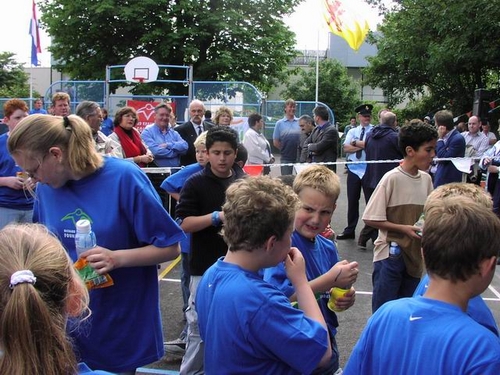 Sportwethouder Ruud Hessing sprak de aanwezigen toe en bedankte onder andere Aad van der Luitvan Sportbedrijf Leiden voor zijn grote inzet bij de totstandkoming van de sportplek. Het sportterrein is gerealiseerd met steun van de Richard Krajicek Foundation en GSB-gelden van de gemeente Leiden. De bewonersverenigingen hebben actief meegedacht over de playground.