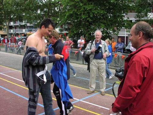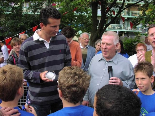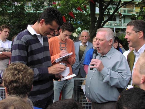 Voor Richard Krajicek had Aad van der Luit nog een cadeautje; de officiële gemeentelijke Presse Papier. "Dat is beter dan een slechte fles wijn," vond Van der Luit. (Foto's: Chris de Waard).