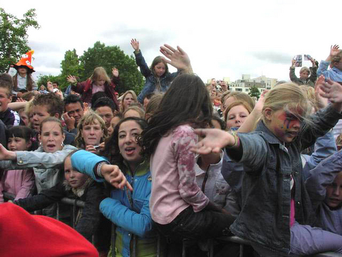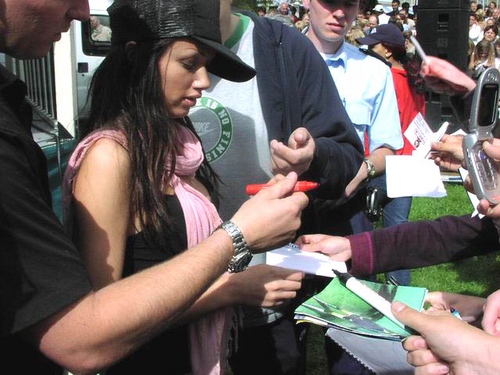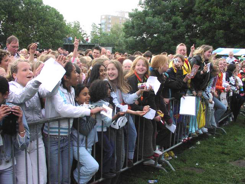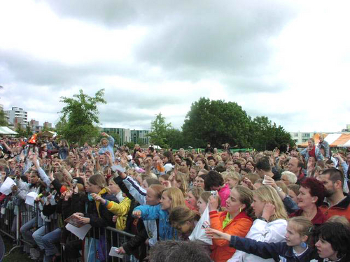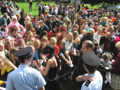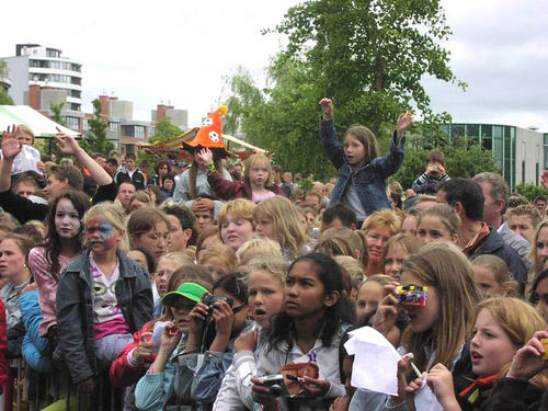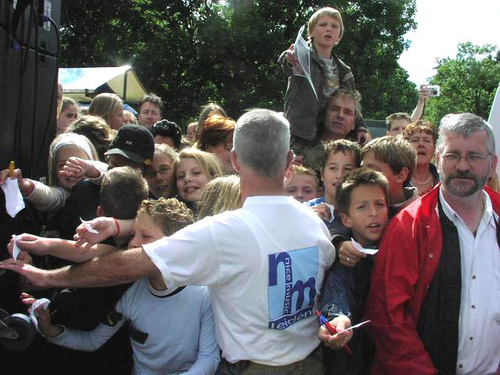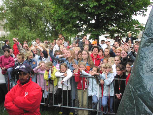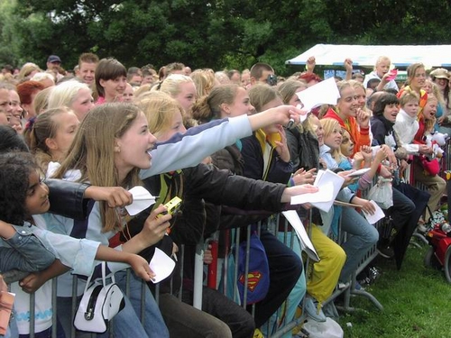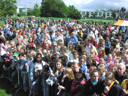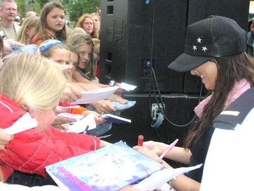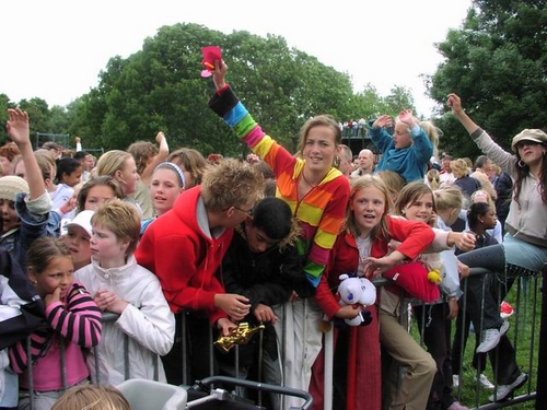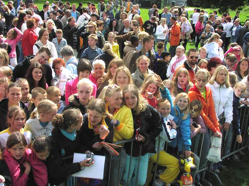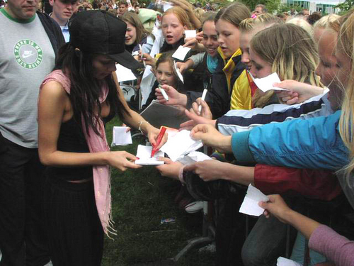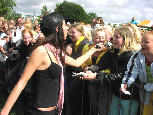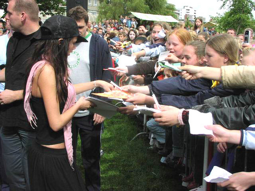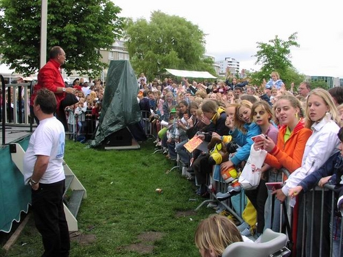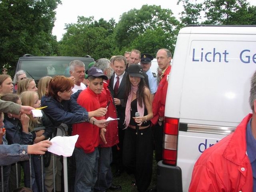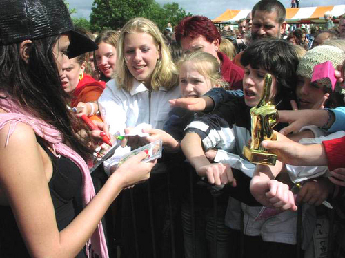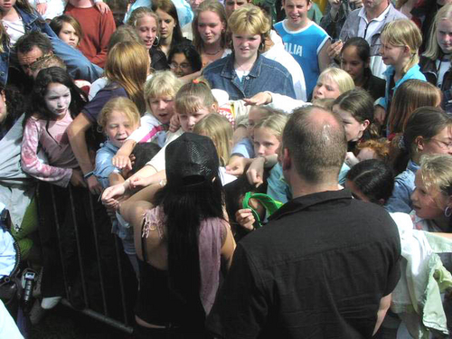 Honderden fans stonden na het optreden van DEWI in de rij voor een handtekening van hun ster. Op cd's, briefjes, t-shirts of gewoon op je hand, het maakte niet uit waar, als de handtekening maar gescoord kon worden. (Foto's: Chris de Waard).