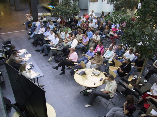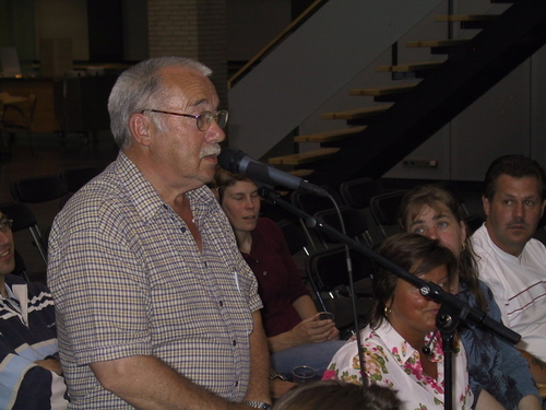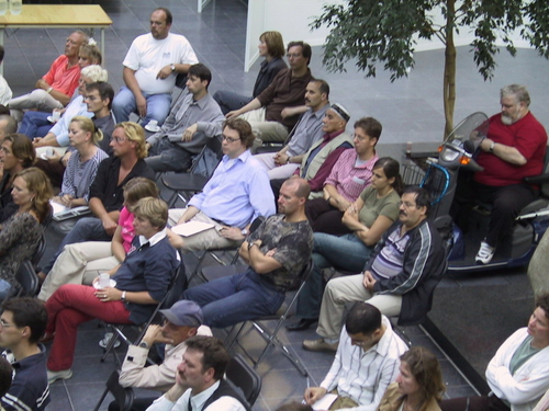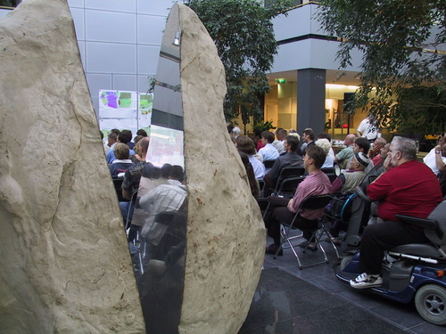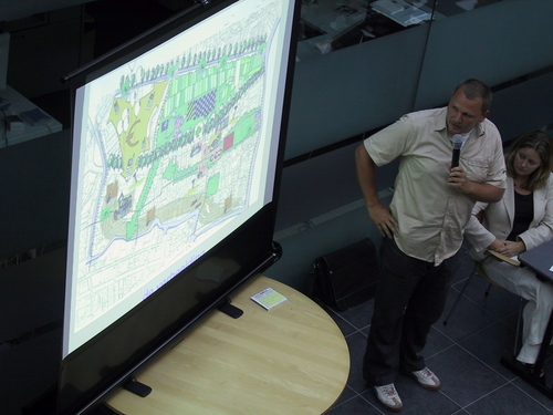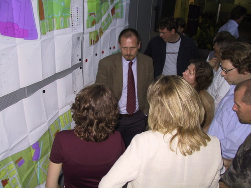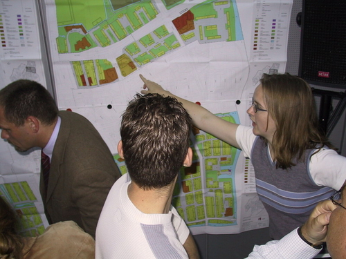 Maandagavond was er in het Atrium van het Stadsbouwhuis in Leiden een informatieavond over het voorontwerp van het bestemmingsplan. In dit bestemmingsplan wordt aangegeven wat de bouwhoogten en bouwvolumes mogen zijn. Ook wort aangegeven wat bebouwd of groen wordt. Waar mogelijk is al rekening gehouden met het Wijkontwikkelingsplan (WOP). Zo'n 70 bewoners uit Noord lieten zich voorlichten, waarbij ook gelegenheid was om vragen te stellen. Stedenbouwkundige Remco Slavenburg liet zien wat er in het WOP staat te gebeuren, terwijl Wethouder Hillebrand waar nadere uitleg gaf. (Foto's: Bram Pater)
