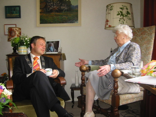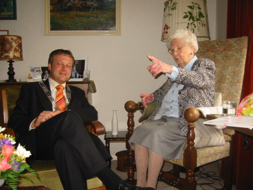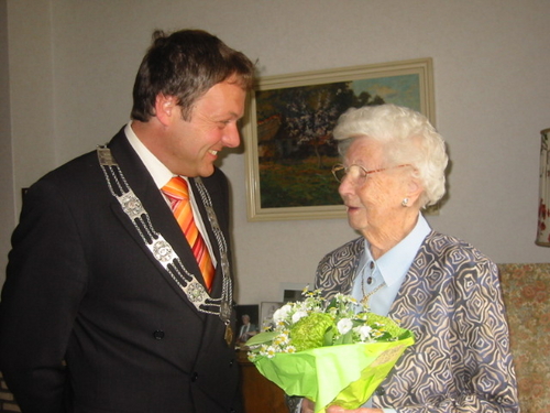 Mensen en dus ook Leidenaren worden steeds ouder. Dat blijkt ook uit het grote aantal bezoekjes de burgemeester Lenferink deze dagen aflegt aan stadsgenoten die de 100 passeren. Afgelopen maandag werd mevrouw Hollebeek-Lek 100 jaar. Burgemeester Lenferink ging woensdag bij haar op felicitatiebezoek.