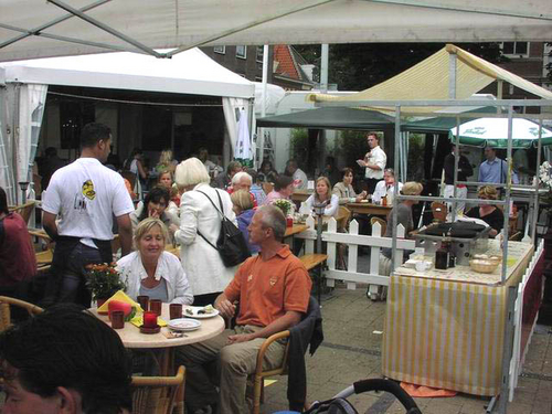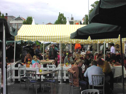 Op de laatste dag was het de hele dag zó druk op het plein dat bijna overal even gewacht moest worden op een tafeltje. Onder het genot van een drankje en het live-optreden van de band Alderliefste was dat goed uit te houden.