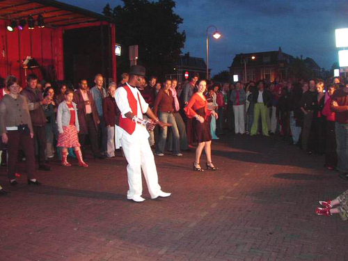 De Leidse Salsaschool Dos Bailadores gaf zaterdagavond op de Herenstraat/Doezastraat een Salsastraatfeest. Vanaf 20.00 uur gingen daar de voetjes van de vloer op de tropische klanken van de Argentijnse Tango, Axé Bahia (Braziliaans), Forró Merengue, Salsa, Samba en Zouk. Naast dansdemonstraties kon het publiek natuurlijk ook zelf volop meedoen. Wie deze avond heeft gemist, krijgt binnenkort een herkansing.