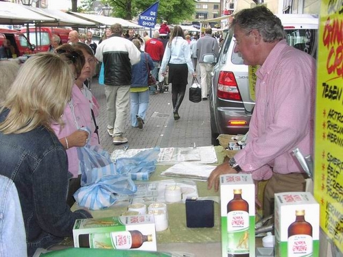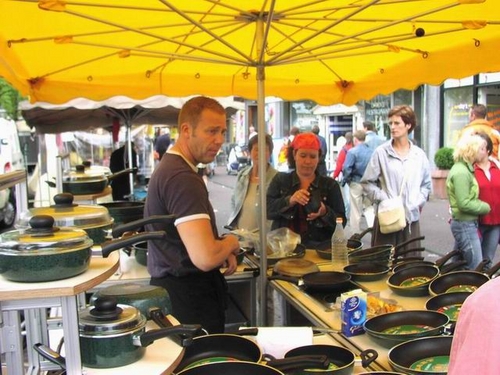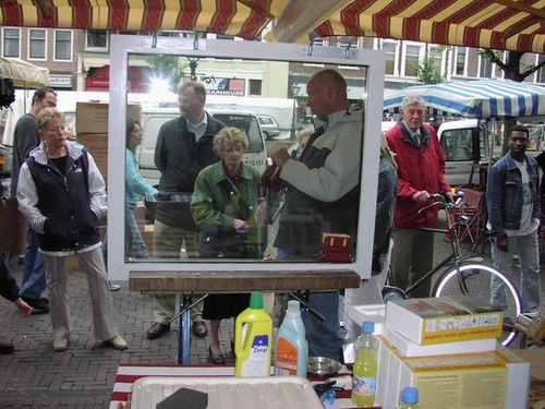 U kent ze wel, de kooplieden die hun standje opzetten onder een parasol en op een bijzondere manier pannen, zemen of andere wondermiddeltjes aan de man proberen te brengen. Het is altijd weer prachtig om te horen hoe de kooplieden met hun vlotte babbel de grootste twijfelaar over de streep trekken.