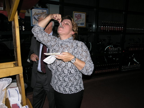 Ook loco-burgemeester Ron Hillebrand prikte een vorkje mee. (Foto's: Chris de Waard).