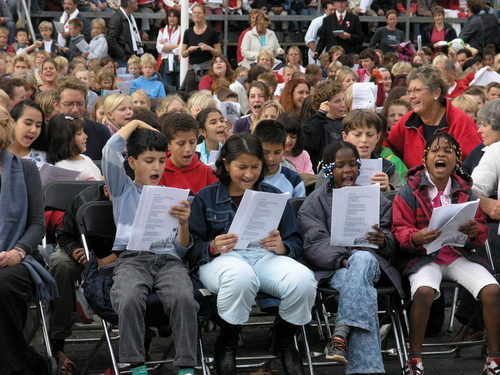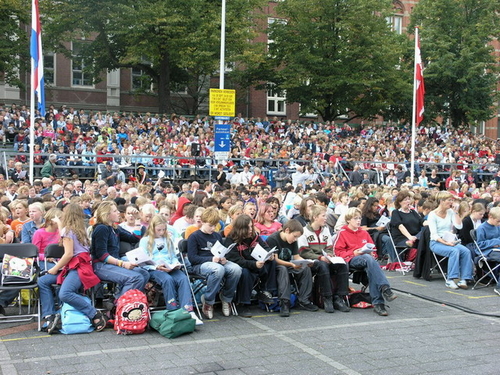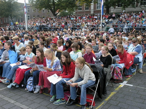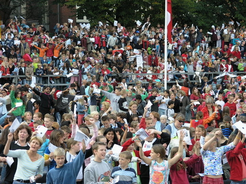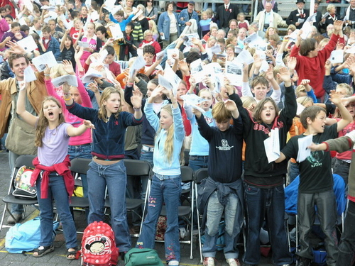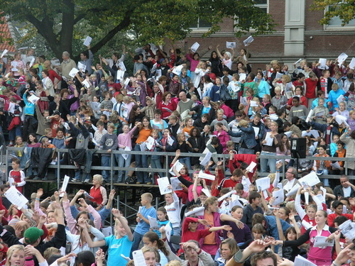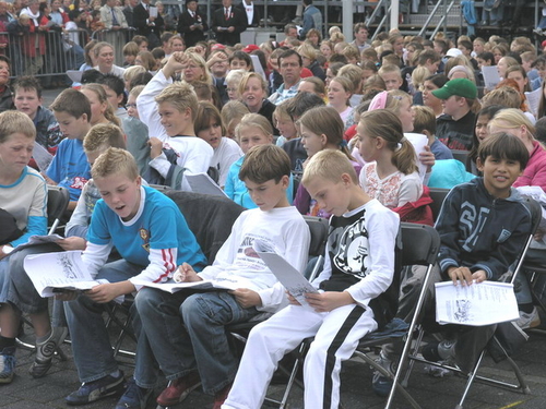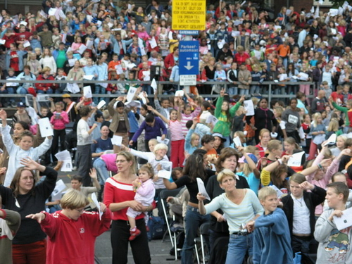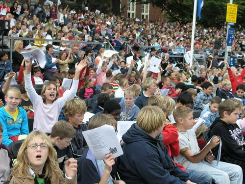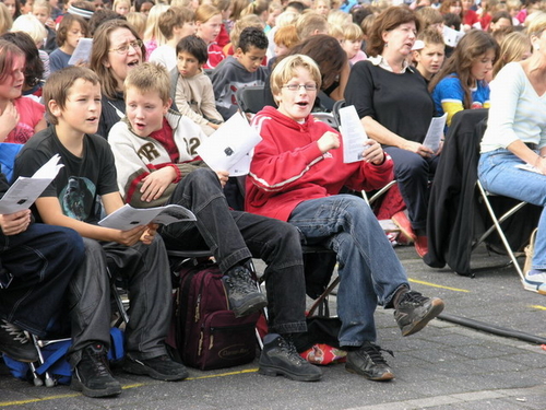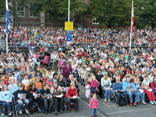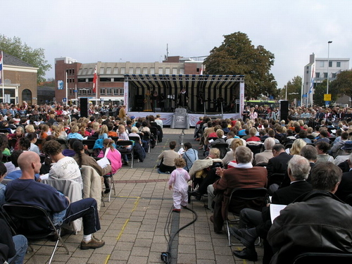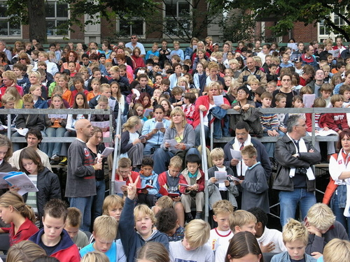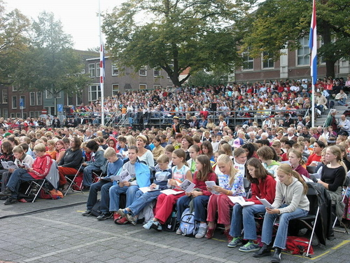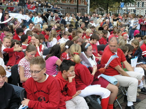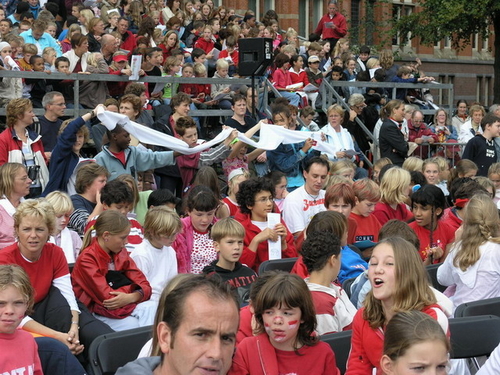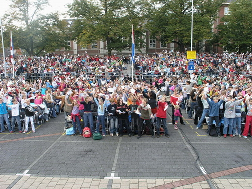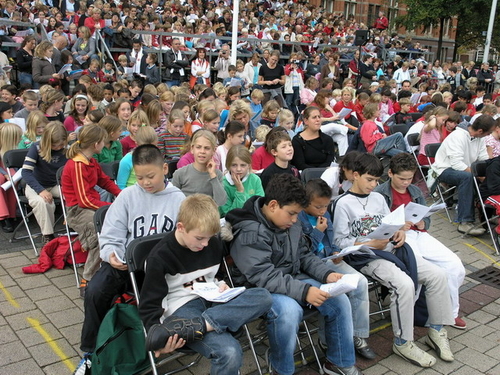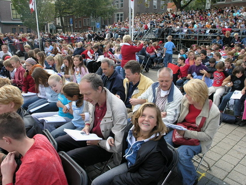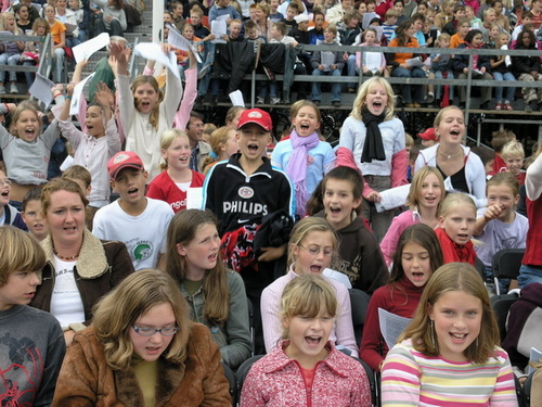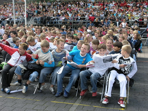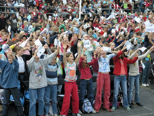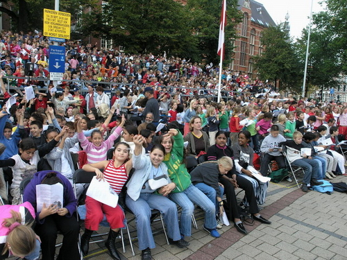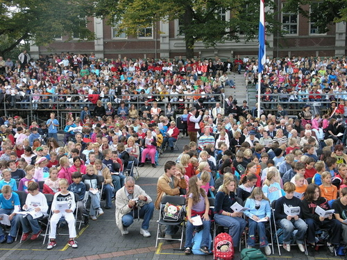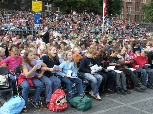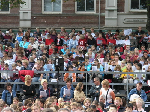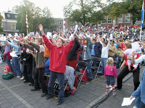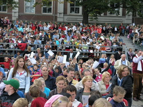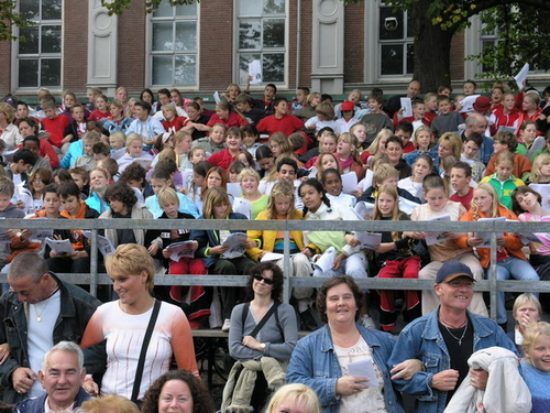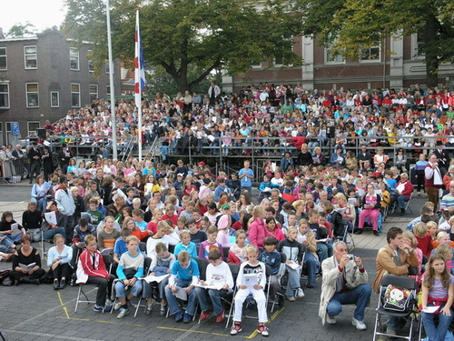 Elk jaar worden het er meer en dit keer stonden er zo’n 2000 Leidse schoolkinderen om 13.30 uur klaar om een uur lang hun kelen schor te zingen tijdens de Minikoraal. “En dat zonder ook maar te oefenen, geweldig!” complimenteerde Eric Filemon in de persoon van Burgemeester Van der Werff de deelnemers.