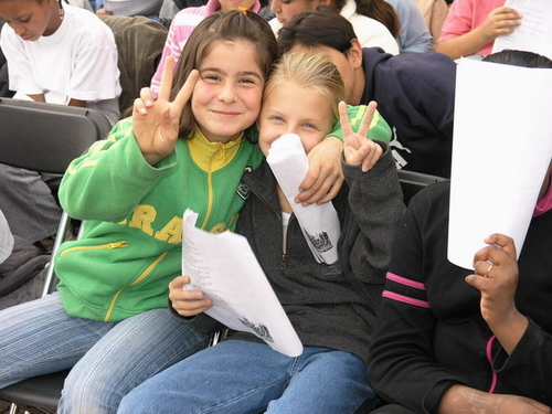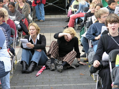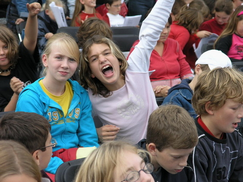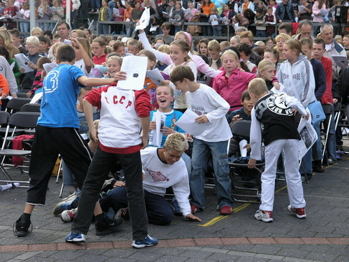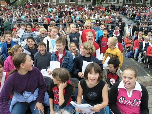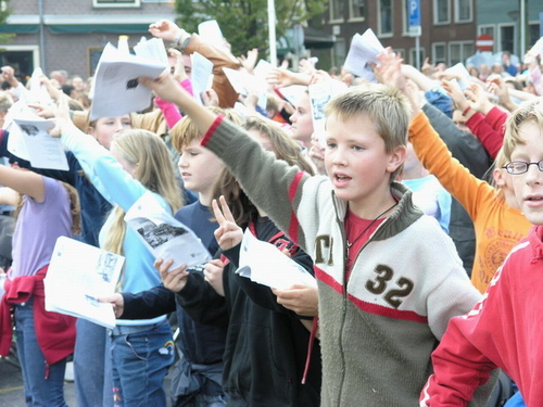 Nou is natuurlijk bijna alles leuker dan gewoon les hebben op vrijdagmiddag, maar het minikoraal op de Garenmarkt is een uitje dat onder de Leidse schoolkinderen wel heel hoog scoort. (Foto's: Chris de Waard).