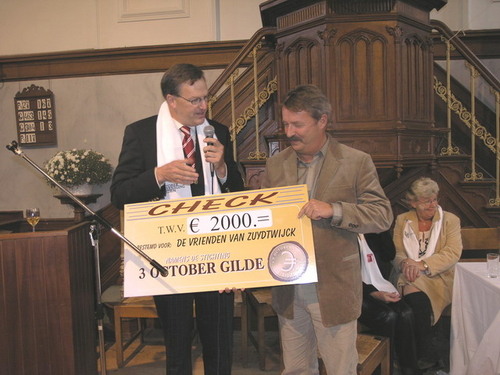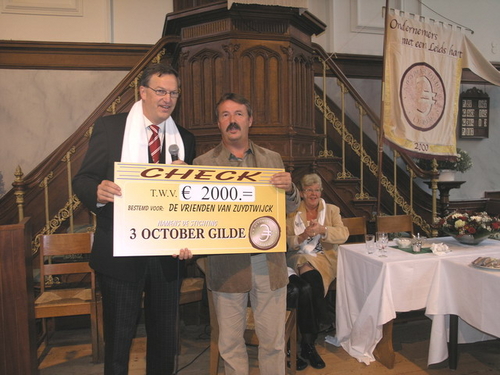 Gilde-voorzitter Ton Geenjaar overhandigde een cheque van maar liefst 2.000 euro aan voorzitter van de ‘De Vrienden van Zuydtwijck’.