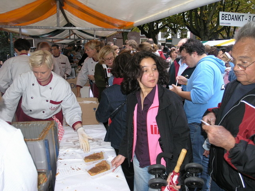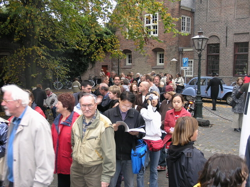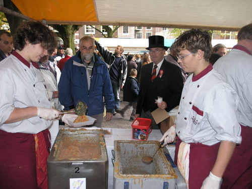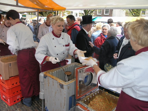 3200 Leidenaren schreven zich half september in voor de Grote Hutspotmaaltijd bij de Pieterskerk en het leek wel of ze er allemaal tegelijk waren. Lange rijen hongerige mensen schuifelden voetje voor voetje richting de gratis maaltijd. Voorafgaand aan de maaltijd kwam het 3 October Gilde bijeen in de Lokhorstkerk. Daar werd onder meer bekend gemaakt dat een deel van de opbrengst van de in juni gehouden Haringveiling naar ‘De Vrienden van Zuydtwijck’ ging.