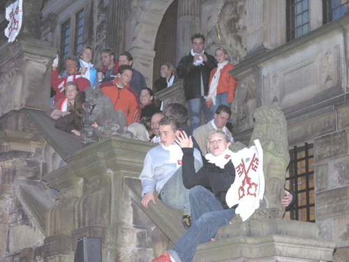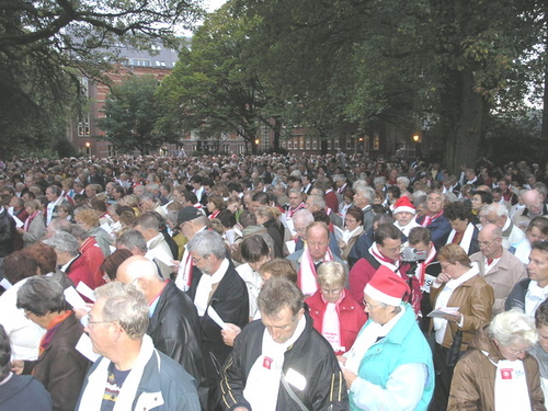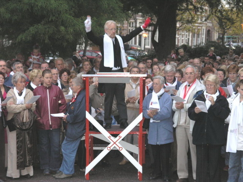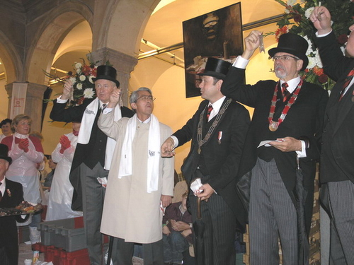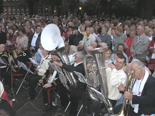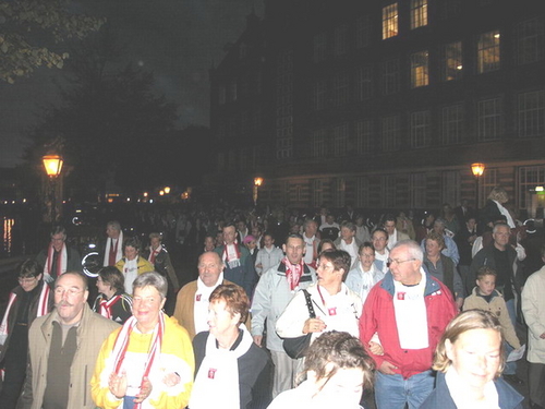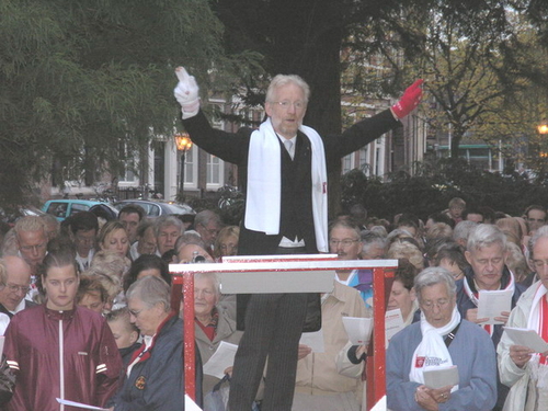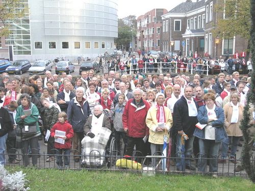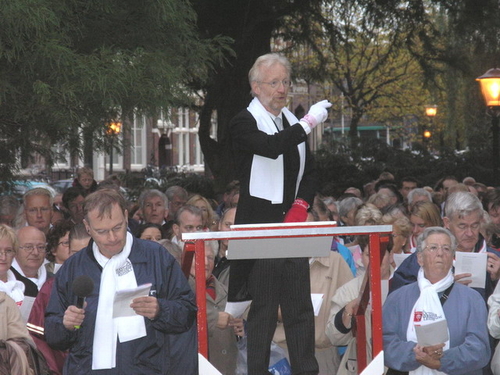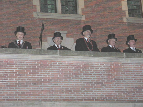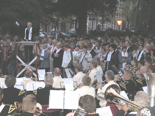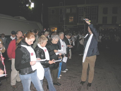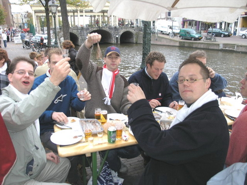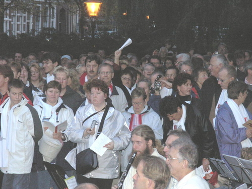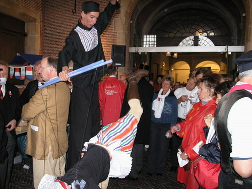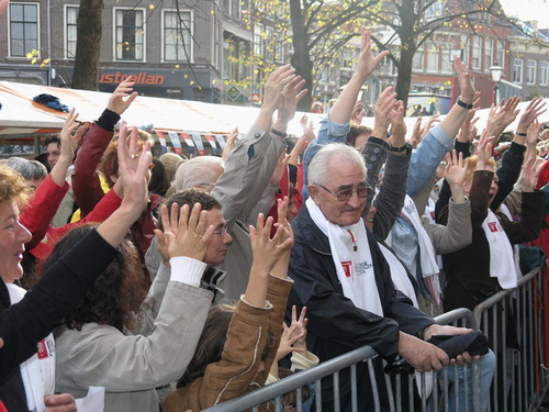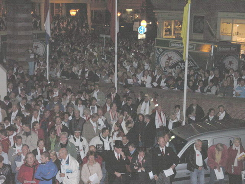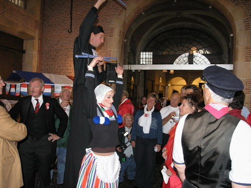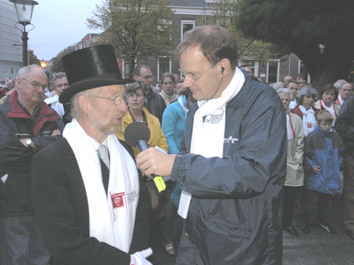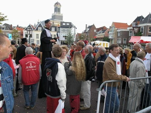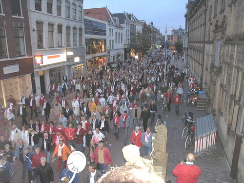 Vanmorgen rond 6.30 uur begon voor vele Leidenaren de viering van Leidens Ontzet bij de Reveillle op en rond het Stadhuisplein. Honderden mensen zongen hun kelen schor om vervolgens de rest van de stad wakker te maken door met de Franciscus Band Leiden een rondje centrum te maken. Vervolgens ging een deel van de mensen alvast naar de Waag waar een megarij stond voor de uitreiking van Haring en Wittebrood.