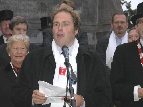 Burgemeester Lenferink vertelde in zijn toespraak dat het 400 jaar geleden is dat zijn voorganger Burgemeester Van der Werff is overleden. "En dat zijn we helemaal vergeten!," zo klapte hij uit de school. Lenferink: "Maar beloof me dat jullie vandaag allemaal een extra Corenwijntje op hem drinken, dan komt het alsnog helemaal goed."