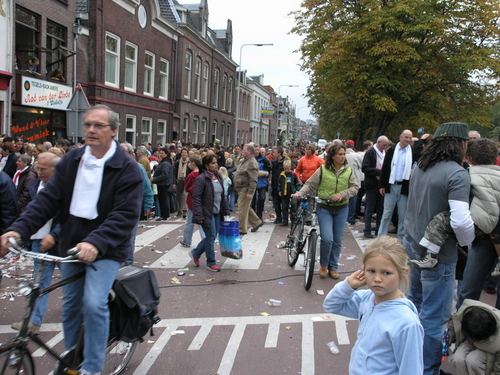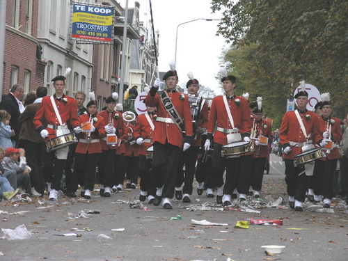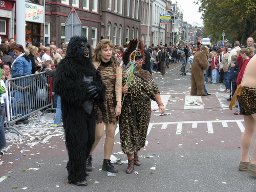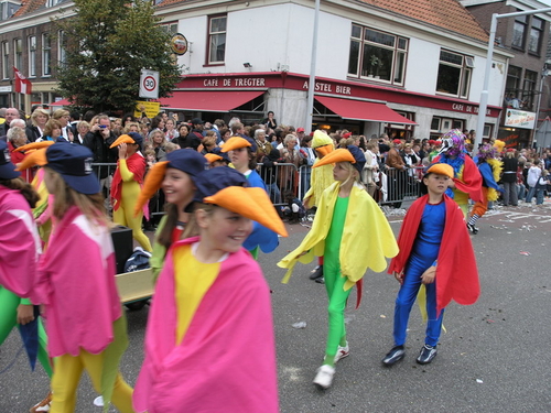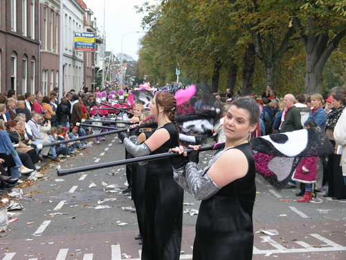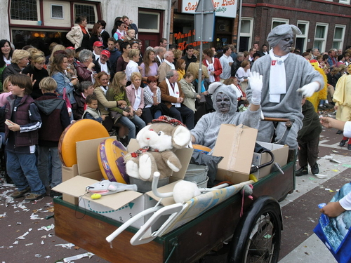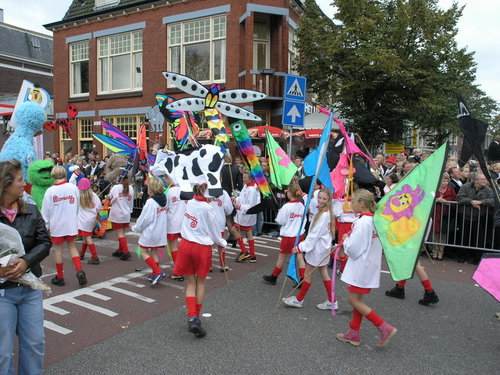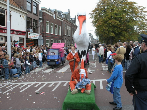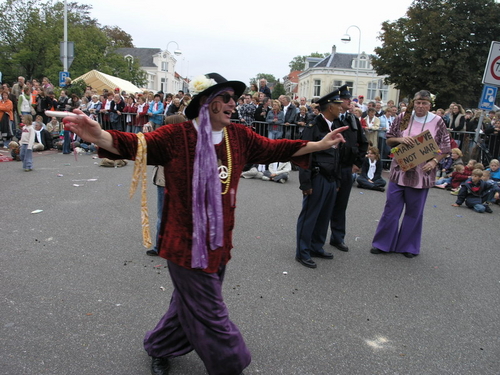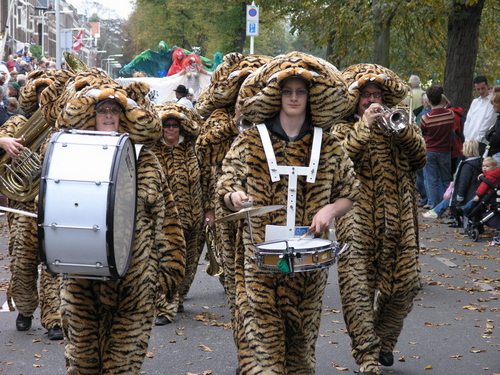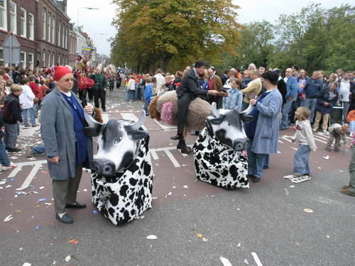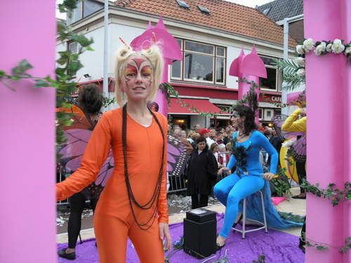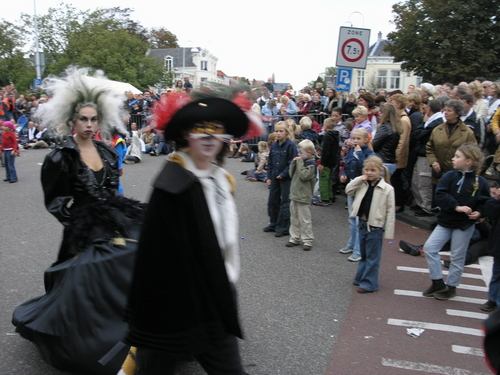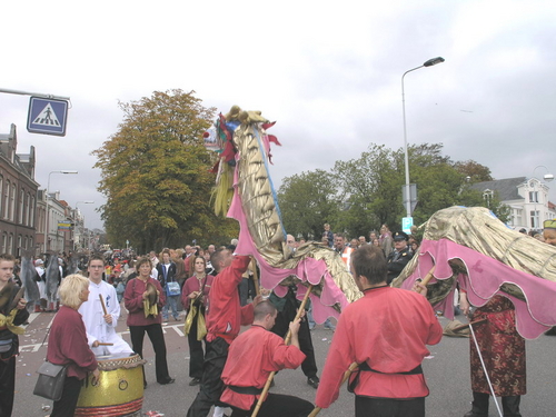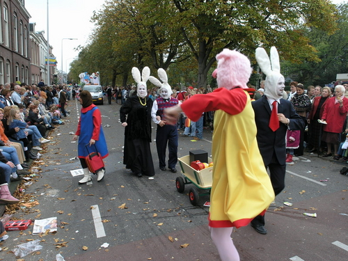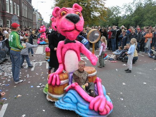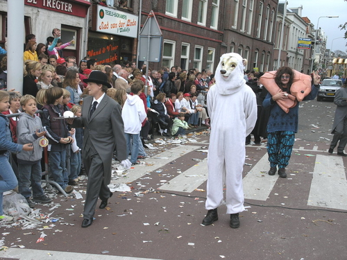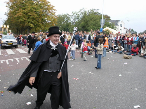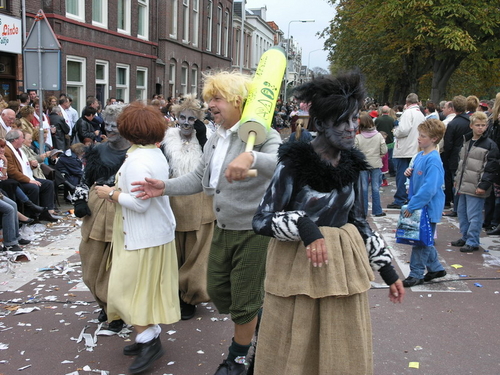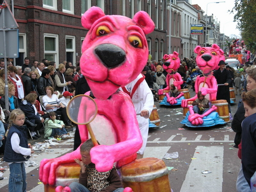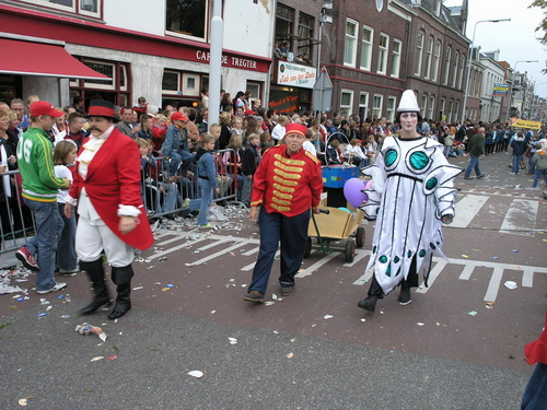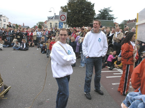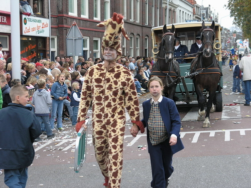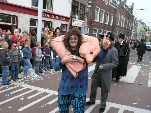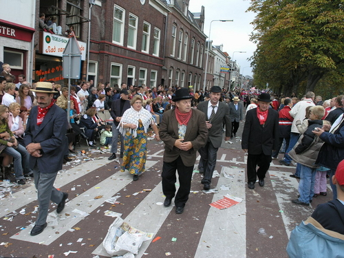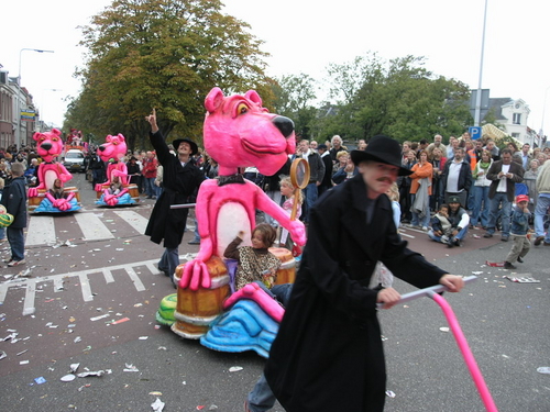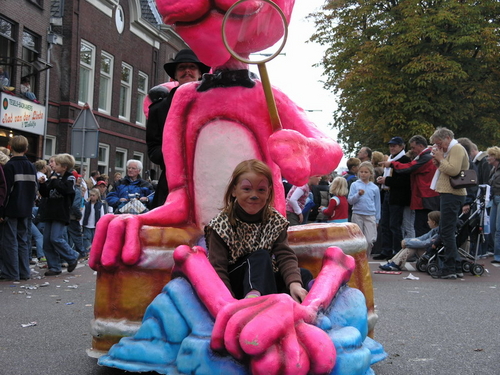 Na afloop van de optocht bleef het nog lang gezellig op de plek waar de foto’s gemaakt zijn; de kruising van de Doeza- en de Herenstraat. Met onder andere muziek van de Leino’s die ook tijdens de optocht regelmatig van zich deden horen door bij zoveel mogelijk deelnemers een passend lied in te zetten. Zo werd bijvoorbeeld bij de roze panters het thema van de film ‘The Pink Panther’ ingezet.