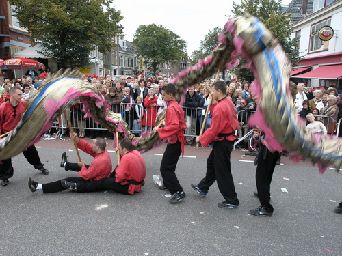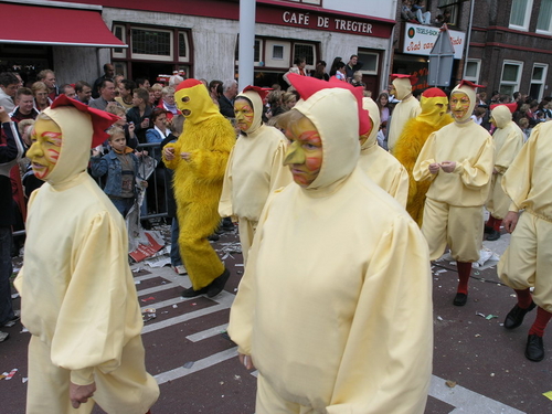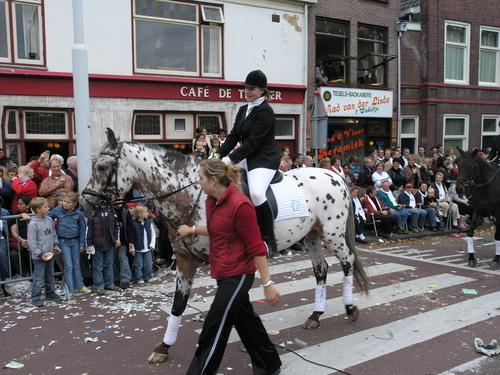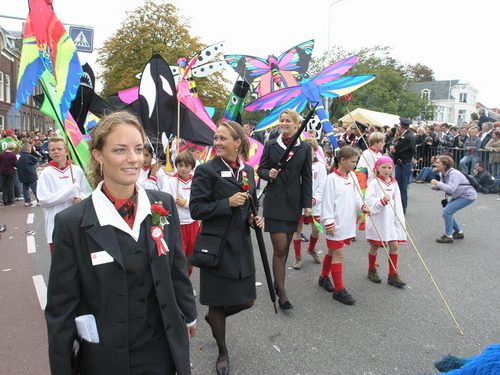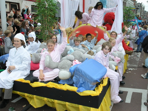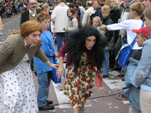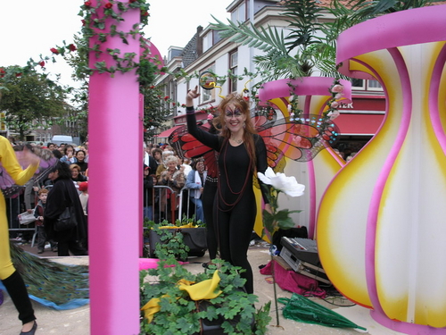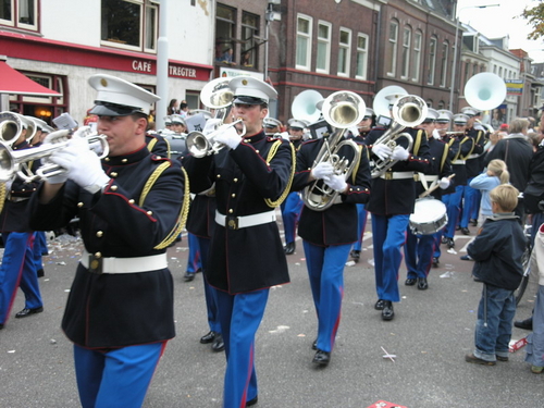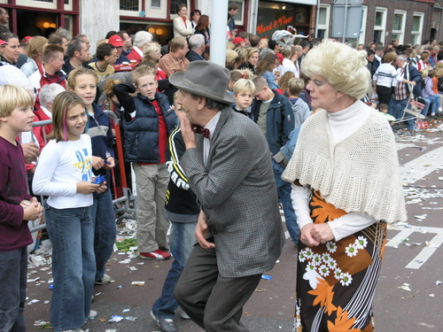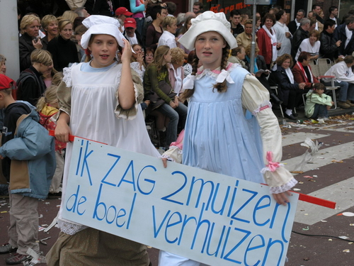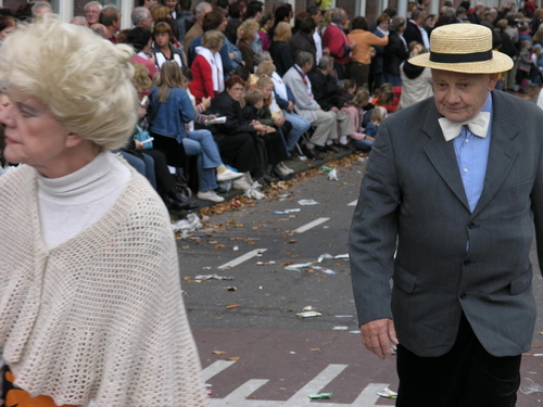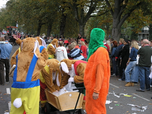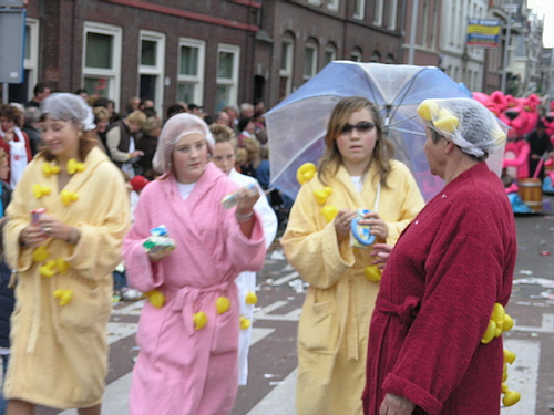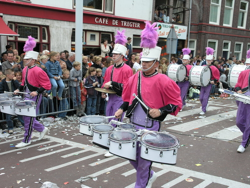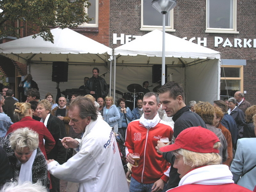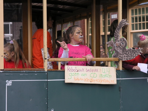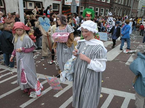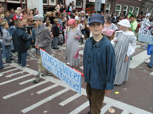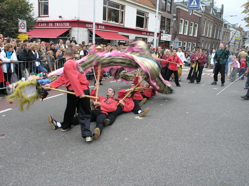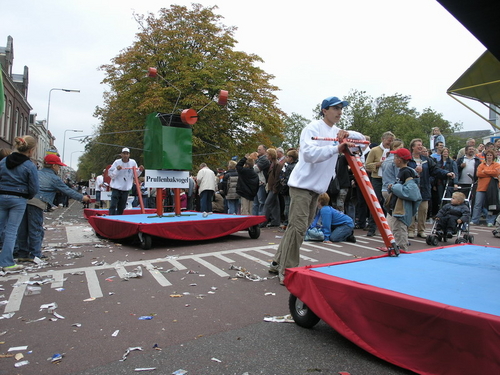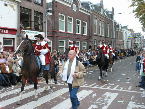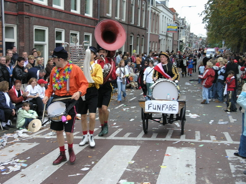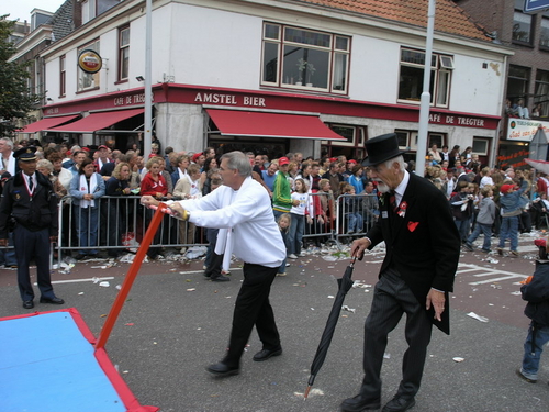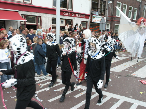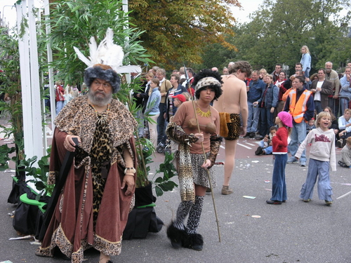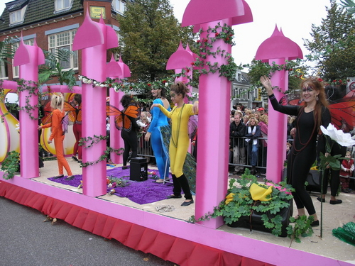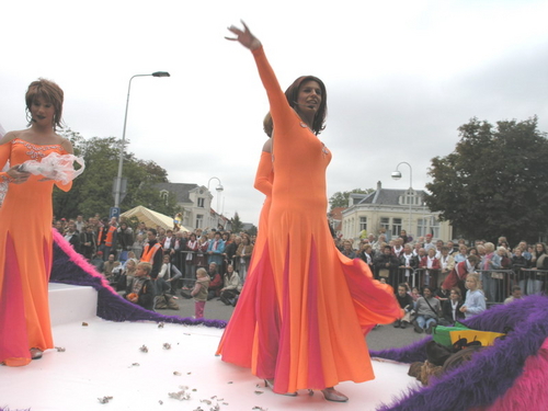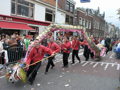 Na afloop van de optocht bleef het nog lang gezellig op de plek waar de foto’s gemaakt zijn; de kruising van de Doeza- en de Herenstraat. Met onder andere muziek van de Leino’s die ook tijdens de optocht regelmatig van zich deden horen door bij zoveel mogelijk deelnemers een passend lied in te zetten. Zo werd bijvoorbeeld bij de roze panters het thema van de film ‘The Pink Panther’ ingezet.