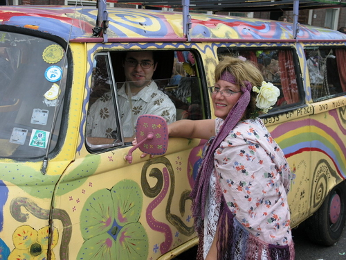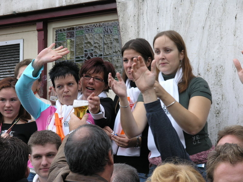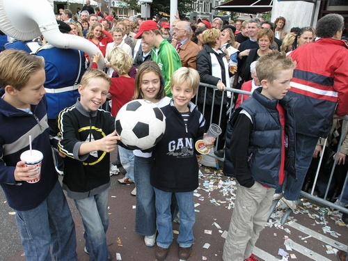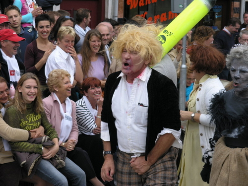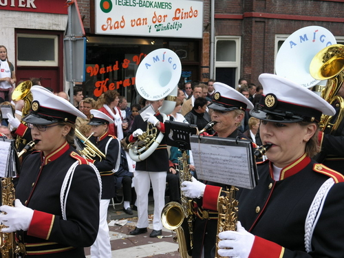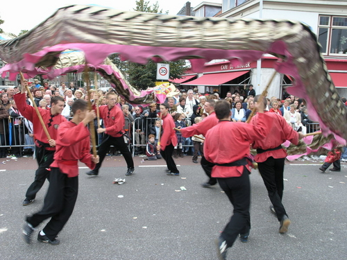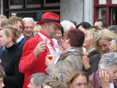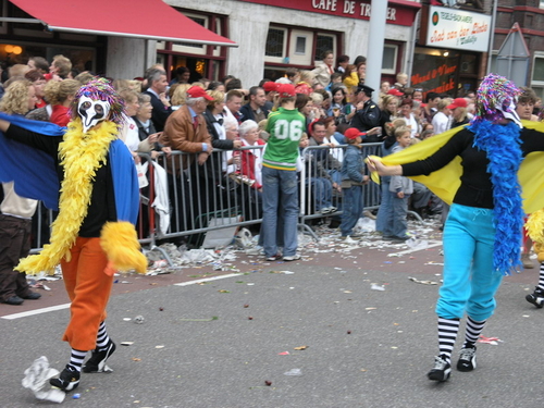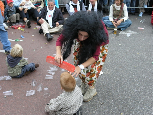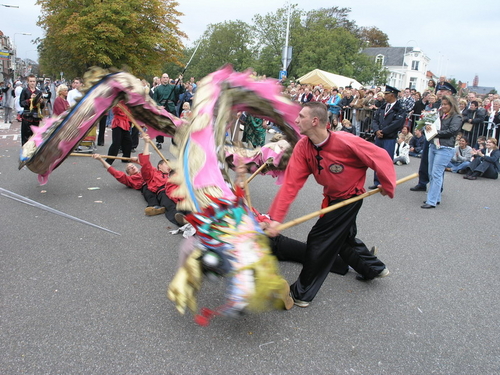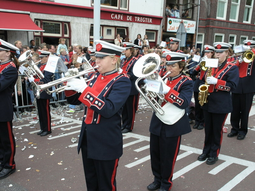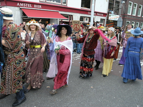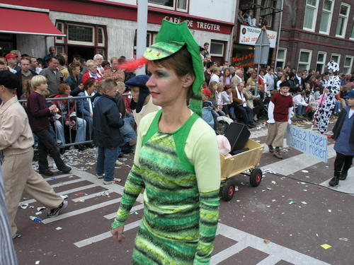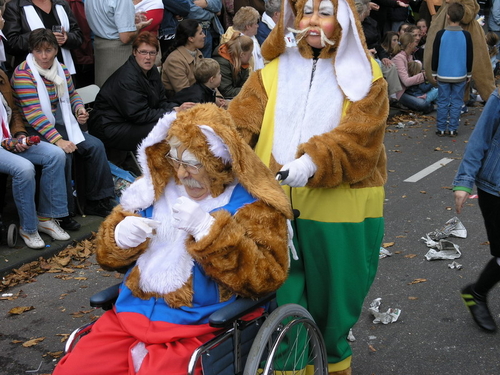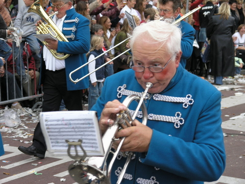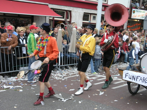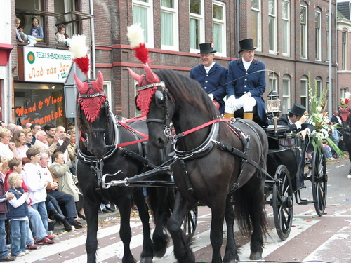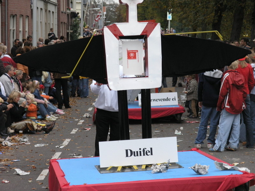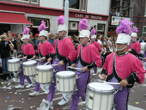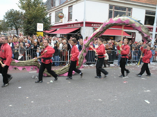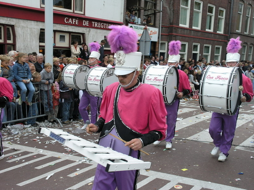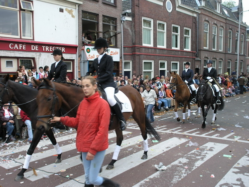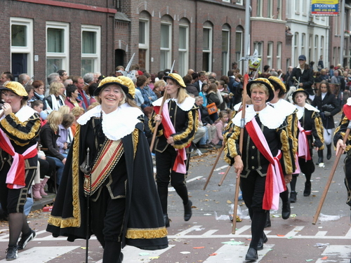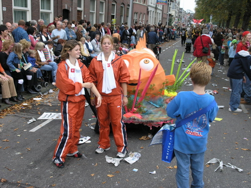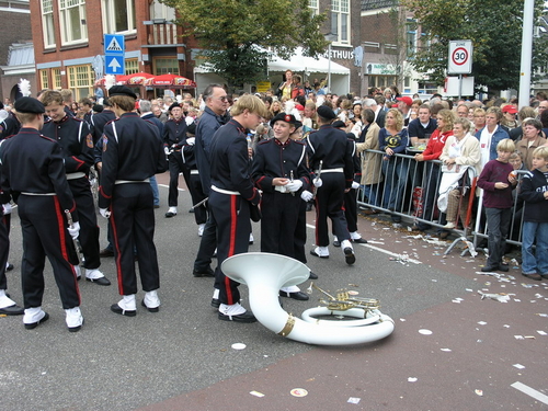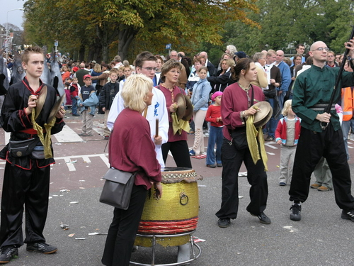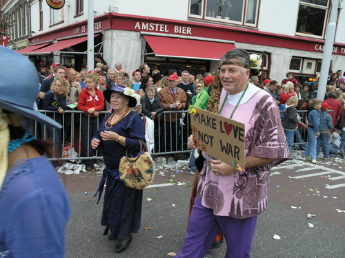 Na afloop van de optocht bleef het nog lang gezellig op de plek waar de foto’s gemaakt zijn; de kruising van de Doeza- en de Herenstraat. Met onder andere muziek van de Leino’s die ook tijdens de optocht regelmatig van zich deden horen door bij zoveel mogelijk deelnemers een passend lied in te zetten. Zo werd bijvoorbeeld bij de roze panters het thema van de film ‘The Pink Panther’ ingezet.