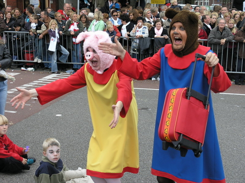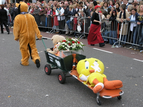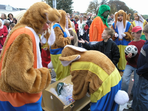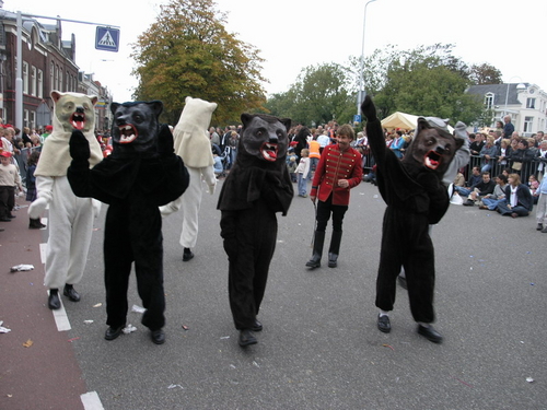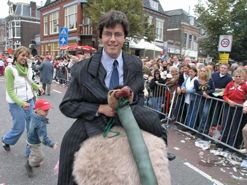 De 3 October Vereeniging heeft dit jaar een Beezzzt van een optocht neergezet. Dat mag best eens gezegd worden. Omdat Leiden 3 oktober dit jaar op dierendag viert, was een thema snel gevonden. Alle deelnemende groepen en personen moesten iets met dieren te maken hebben. En dat leidde tot soms verrassende combinaties, zoals een Snoek met een fuik op het dak, King Kong ‘look-a-likes’ die het publiek ontvlooiden, een kudde schapen en een groep valkeniers. En uileniers. Of zou dat anders heten? In ieder geval was er een aantal uilen van indrukwekkend formaat gevonden.