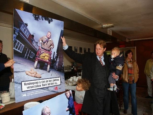Vandaag heeft wethouder Rogier van der Sande (wijkbeheer) officieel het startschot gegeven voor de nieuwe Leidse aanpak van de overlast door hondenpoep. In aanwezigheid van pers en geïnteresseerden gaf de wethouder in park De Put het goede voorbeeld door een drol te deponeren in een nieuw geplaatste depo-dog. Vervolgens konden de aanwezigen de posters bezichtigen die onderdeel zijn van de communicatiecampagne. Onder het motto ‘Hondenpoep is vies en kan ziekten veroorzaken. Ruim het dus op’, moet deze campagne hondenbezitters informeren over de regels die gelden in Leiden en een mentaliteitsverandering teweeg brengen.