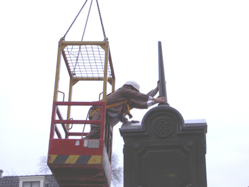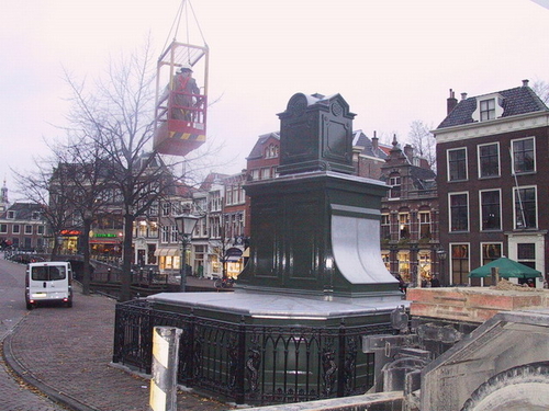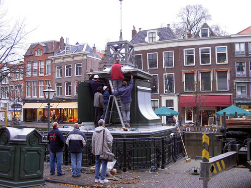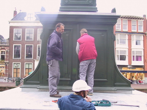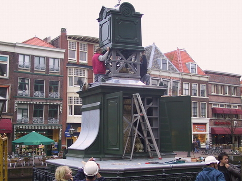 Wethouder Geertsema (Monumenten en Archeologie) voltooide dinsdagmiddag de nieuwe winterkist voor de historische visfontein aan de Vismarkt in Leiden. Tijdens een feestelijke bijeenkomst plaatste de wethouder het laatste ornament van de winterkist. Om de visfontein te beschermen tegen regen, wind en vorst werd deze sinds 1872 tijdens de wintermaanden ingepakt met een winterkist. In de jaren zestig van de vorige eeuw is dit inpakken in onbruik geraakt. Omdat de gemeente Leiden het behoud van de fontein belangrijk vindt, is een nieuwe winterkist gebouwd en gaat de fontein voortaan weer beschermd de winter in.