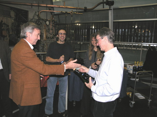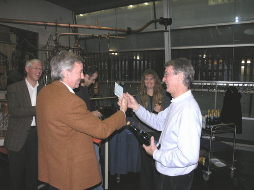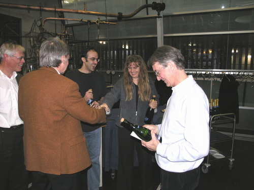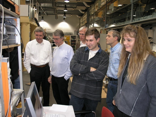 De dekaan van de faculteit der wis- en natuurkunde, Frans Saris, realiseerde zich dat maar al te goed en heeft de projectleider Prof. Giorgio Frossati dinsdag een cheque overhandigd van 250.000 euro om het project te kunnen voortzetten. De voorwaarde was dat MiniGRAIL op 15 November volledig operationeel zou zijn. Het MiniGRAIL team heeft er de afgelopen maanden alles aan gedaan om dat voor elkaar te krijgen, en het is gelukt. “De eerste maand zijn we overdag nog bezig met calibraties en het optimaliseren van het systeem. Als alles goed gaat, kunnen we over een paar maanden de meest gevoelige detector ter wereld hebben bij deze frequentie”, aldus een trotse Frossati.