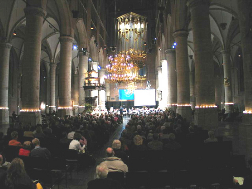 Donderdagavond werd in de Pieterskerk een groot concert gehouden ten bate van het Prins Bernhard Cultuurfonds. Aan het concert deden vier bekende Leidse orkesten mee: K&G, de Leidse Harmoniekapel, Nieuw Leven en Werkmans Wilskracht. Verder werkten de Leidse Video- en Smalfilmliga mee aan het muzikale Leidse onderonsje. Zij vertoonden op een groot scherm bijpassende beelden bij de muziek.