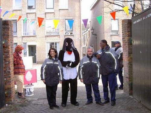 Leden van het Buurtserviceteam hielpen de bewoners met het opruimen van alle drollen in de straat. (Foto's: Ed Walbeehm).