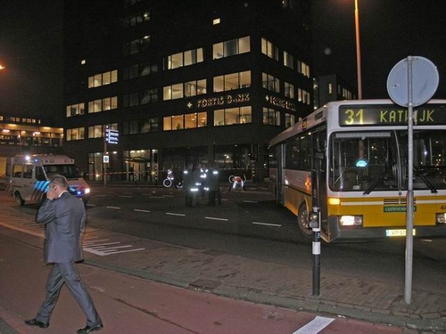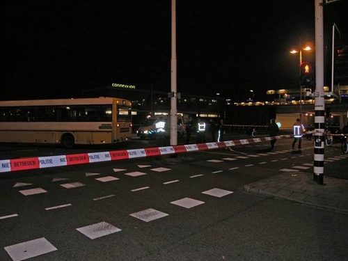 De bus naar Katwijk heeft gisteren aan het eind van de middag een 62-jarige fietser aangereden. De man raakte ernstig gewond. (Foto's: Chris de Waard).