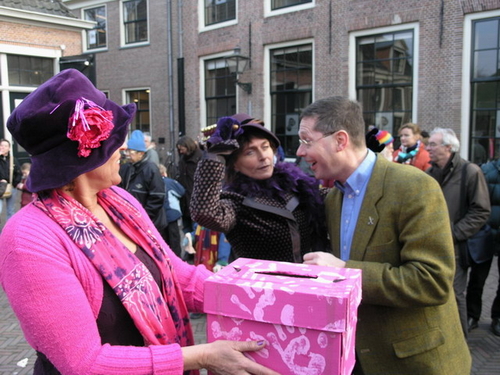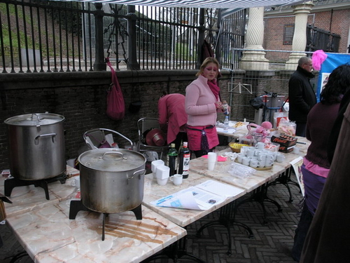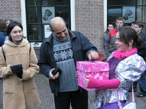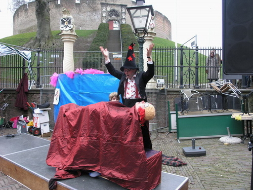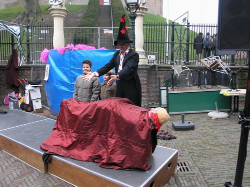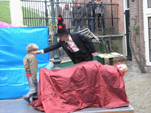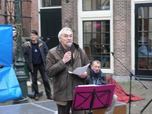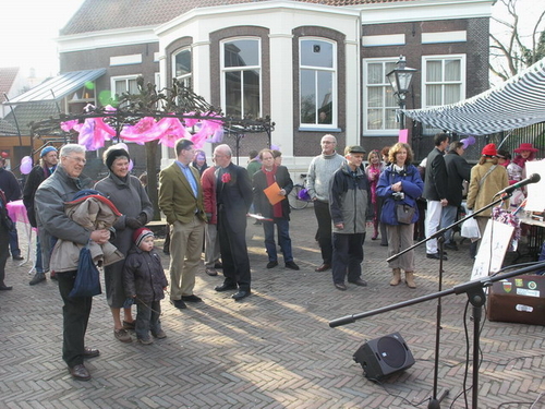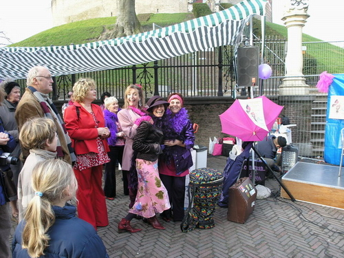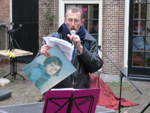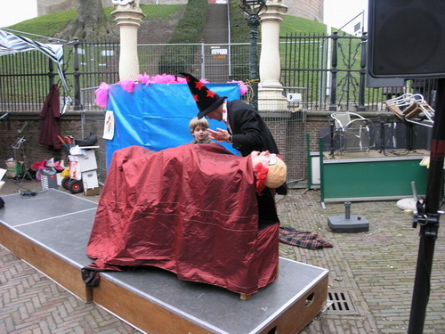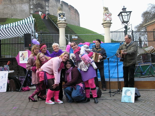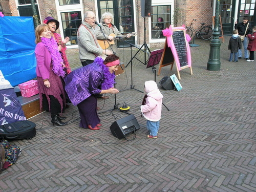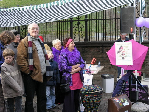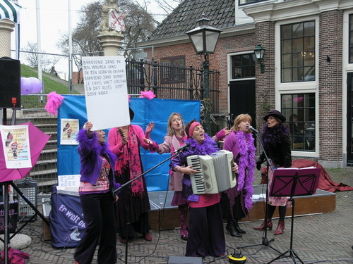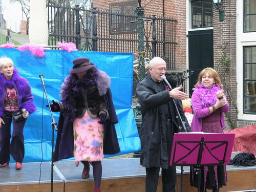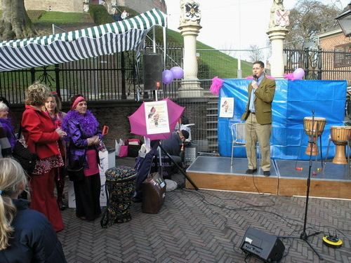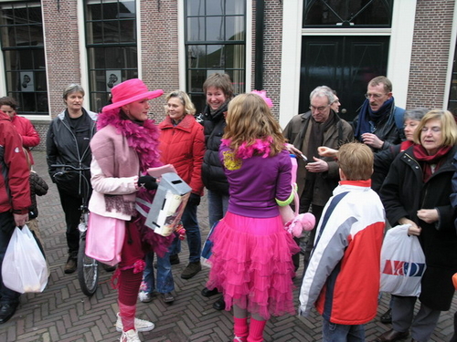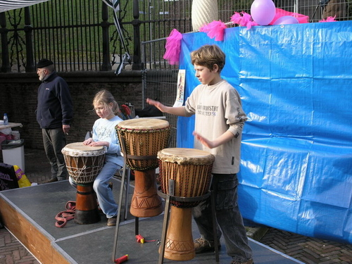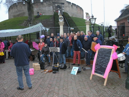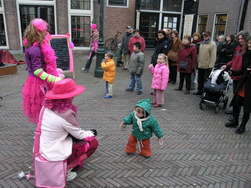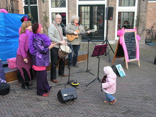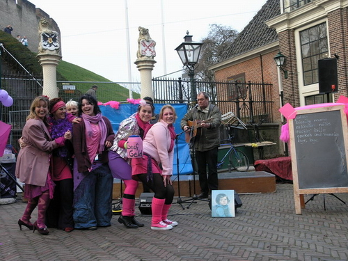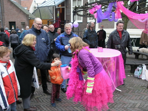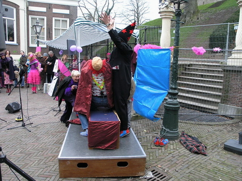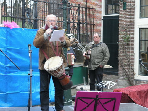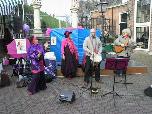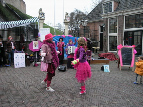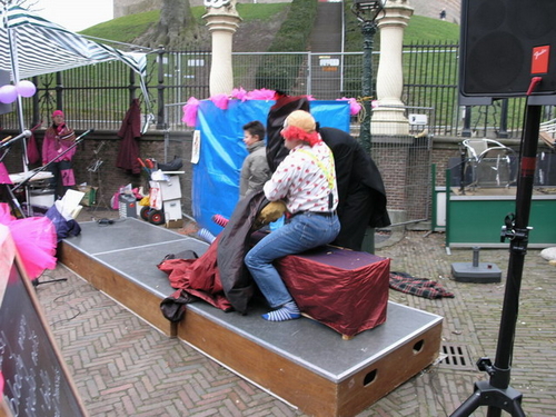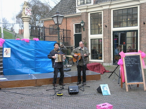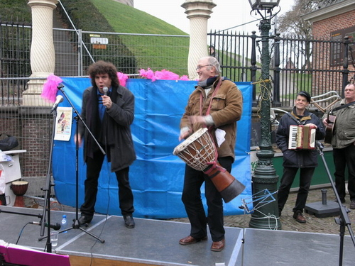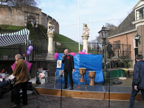 De hele middag was het gezellig druk op het plein voor de Burcht. Muziek, zang- en dichtkunst wisselden elkaar af tijdens de benefietmanifestatie ten behoeve van de tsunami-slachtoffers in Oost-Afrika. Met name het straatarme Somalië heeft hulp nodig. Door te bieden op liedjes, kusjes te kopen van lieftallige dames of gewoon een kop erwtensoep te kopen kon iedereen zijn of haar steentje bijdragen. Dat leverde zo’n 800 euro voor het goede doel op.