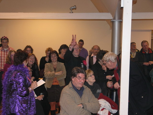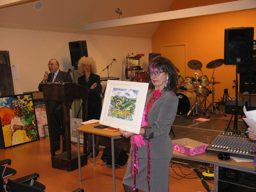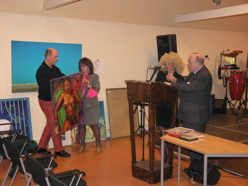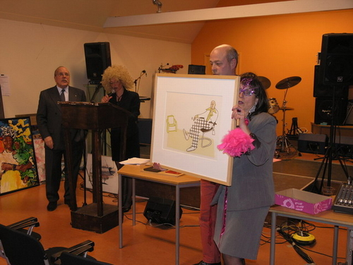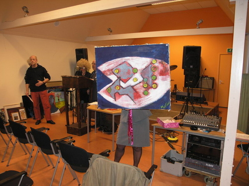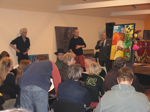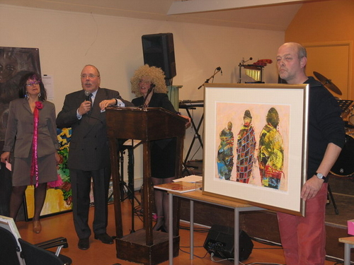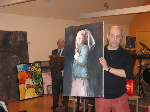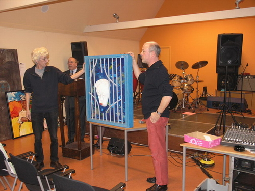 Leidse kunstenaars stelden belangeloos werk beschikbaar voor de kunstveiling. De opbrengst was een dikke 5.000 euro. (Foto's: Chris de Waard).
