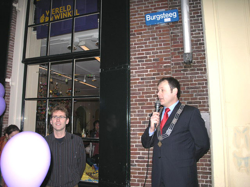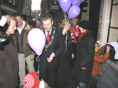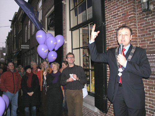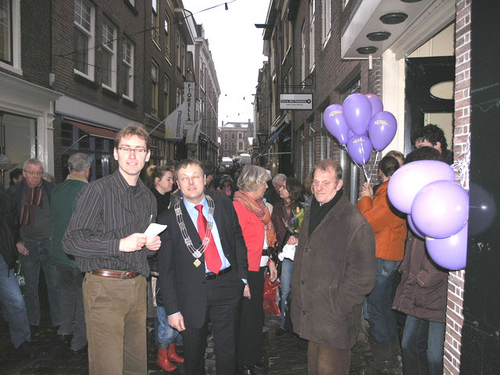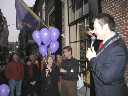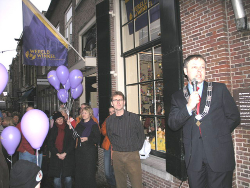 Onder grote publieke belangstelling heeft burgemeester Lenferink zaterdagmiddag de Wereldwinkel in de Burgsteeg heropend. De winkel heeft de afgelopen weken een ware metamorfose ondergaan. De landelijke stichting waaronder ook de Leidse Wereldwinkel opereert heeft namelijk een concept ontwikkeld waar alle Wereldwinkels aan moeten gaan voldoen. Dit moet zorgen voor een grotere herkenbaarheid bij het publiek. Of, zoals burgemeester Lenferink in zijn openingspraatje zei: “Je ziet nu meteen dat het geen Blokker is”.