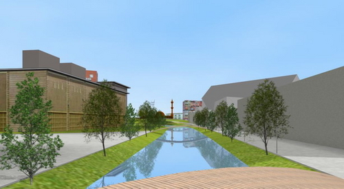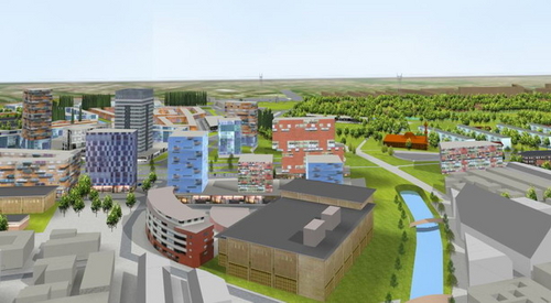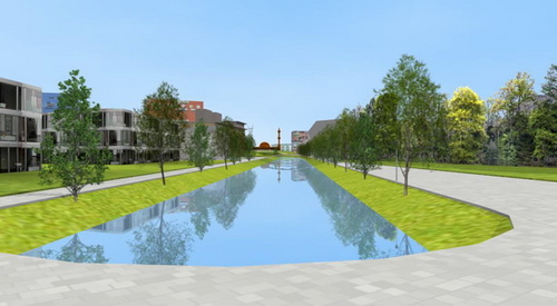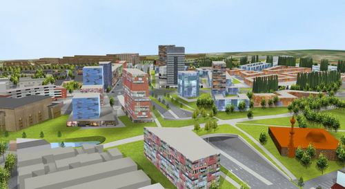 Bovenstaande 'Artist Impression' geeft aan hoe dit deel van Leiden Noord er straks uit moet gaan zien. Een deels verdiept aangelegde Willem de Zwijgerlaan en de nieuwe moskee op de plek waar nu nog de Van Voorthuijsenschool staat. Linksonder op het plaatje de nieuwe wijk 'Nieuw Leyden', daarboven de Koningstraat en Groenoordplaza.