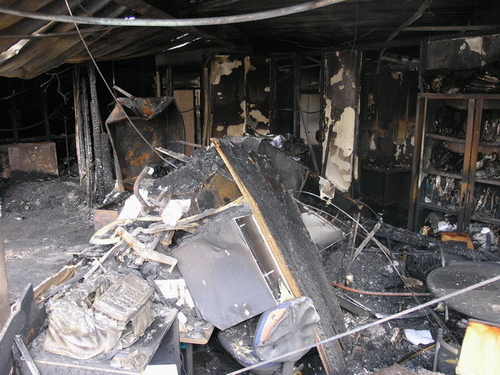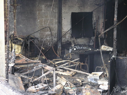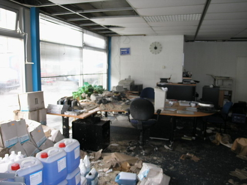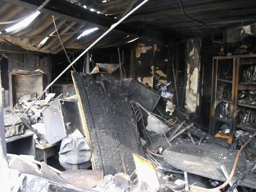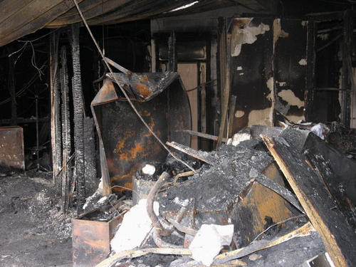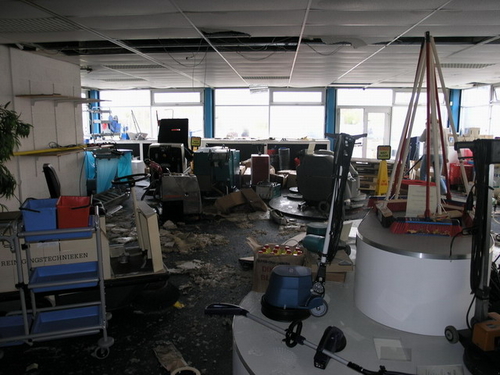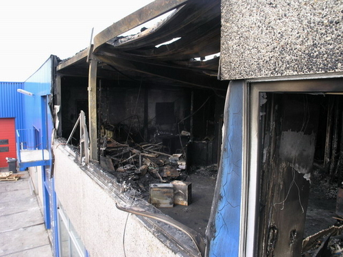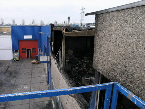 Vrijdagmiddag gaven politie en brandweer na bijna een week onderzoek het gedeelde van het pand vrij waar de brand vrijwel zeker is begonnen. Er is weinig over van de kantoren in deze vleugel van het bedrijvencomplex. (Foto's: Chris de Waard).