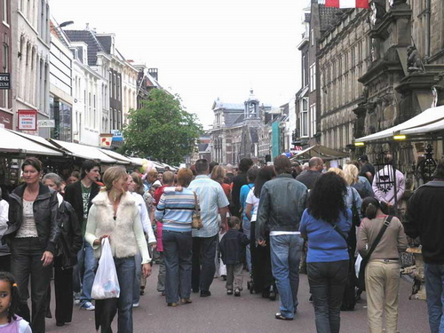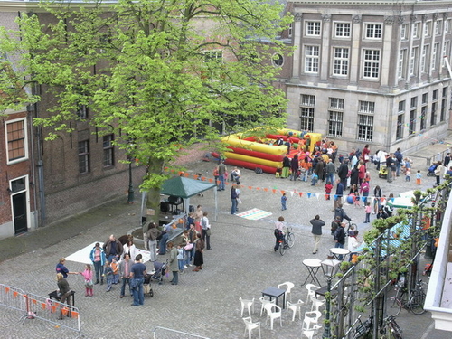 Terwijl vanmorgen rond 7.30 uur het carillion van het stadhuis begon te spelen en de Vereniging Koninginnedag Leiden (VKL) de dag officieel begon met het hijsen van de vlag, waren de marktkooplui al druk in de weer om hun kramen op orde te brengen. Vanaf 10.00 uur barstte het feest overal in de stad in alle hevigheid los. Een enorme mensenstroom vond de weg naar het centrum, waar voor jong en oud talloze activiteiten op het programma stonden.
