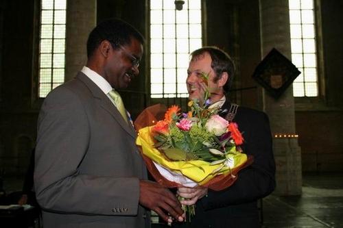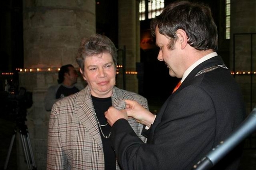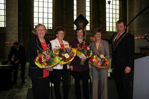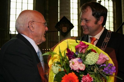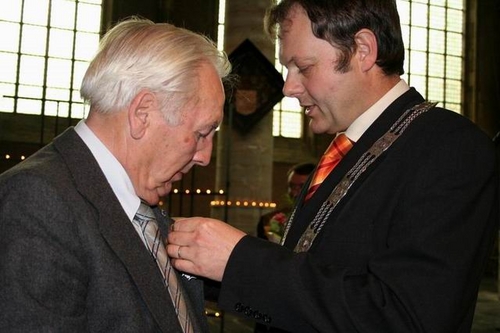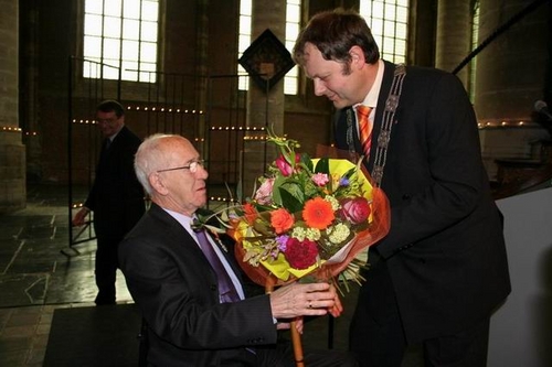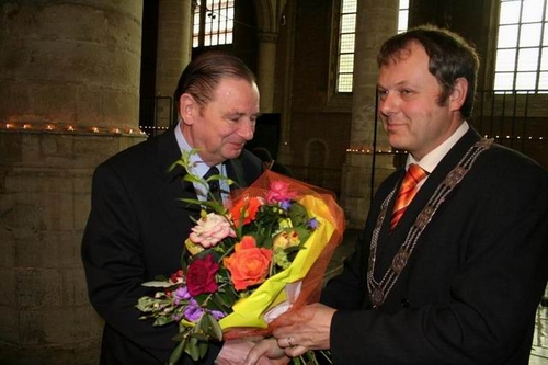 Burgemeester Lenferink spreekt over de verdiensten van Jan Willem Bruins van de stichting TEGEN-BEELD; hij werd benoemd tot lid in de Orde van Oranje Nassau. (Foto: Ed Visser). Overige foto's: Bram Pater.