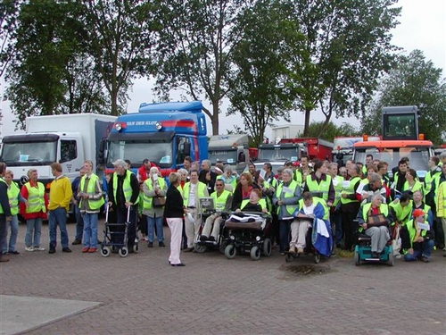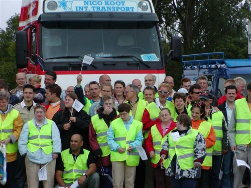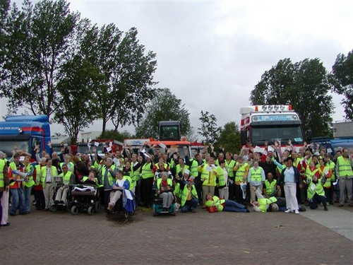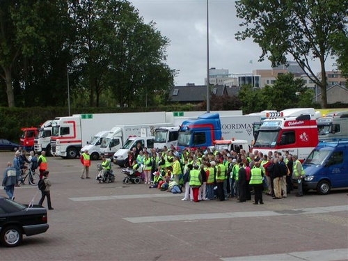 Vervolgens ging het in groepjes naar de Groenoordhallen. Daar stonden meer dan 50 prachtige vrachtauto’s klaar. De vrachtauto’s waren feestelijk opgesierd met trosjes ballonnen, waardoor ze herkenbaar waren als deelnemer aan de tocht. Een prachtige okergele vrachtauto van Jan van Duuren, een brandweerauto, de Vliko auto’s, een bijzondere auto van Barthen, een hijskraan, een prachtige vrachtwagencombinatie van Drankenhandel Boonekamp en nog vele anderen zorgden voor een bonte verzameling.