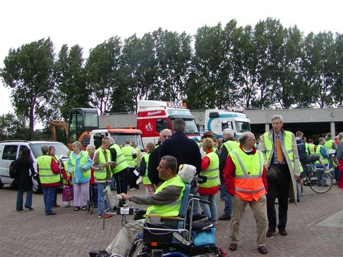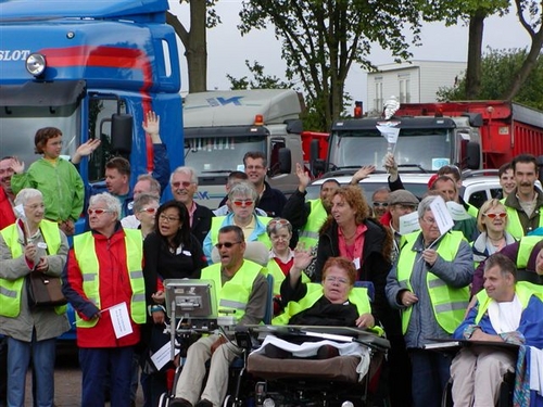 Afgelopen zaterdag was het een drukte van belang in en rond het clubhuis van VTV/Club58 aan de Gabriël Metsustraat. De Lions club Leiden Oude Rijn organiseerde in samenwerking met een groot deel van het Leidse regionale bedrijfsleven de Eerste Leidse Toetertoer voor 150 leden en vrijwilligers van VTV/Club58. Ondersteund door de Leidse burgemeester Henri Lenferink is de “Toer” met meer dan 50 deelnemende bedrijven een groot succes geworden. In de vrachtauto’s reden de leden van VTV/Club58, mensen met een verstandelijke beperking, mee. Zij kregen bij aankomst op hun clubgebouw een vrolijk muziekaal onthaal van het 16 man tellende Leidse straatorkest “de Mare Toeters”.