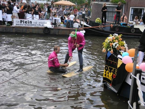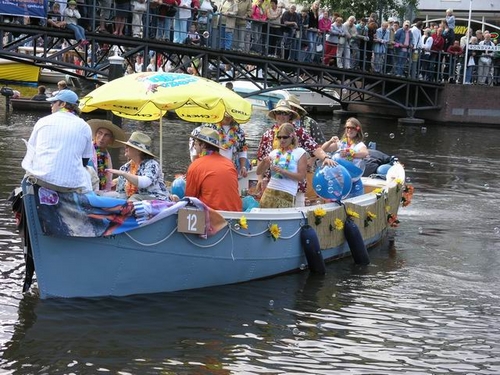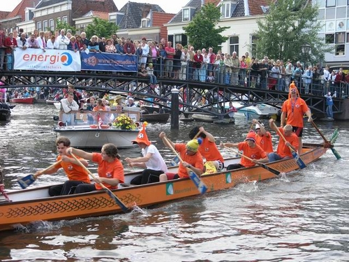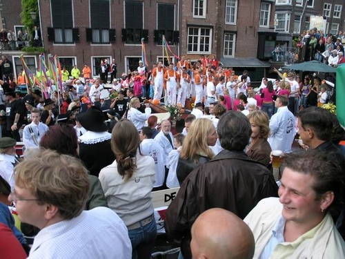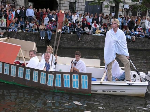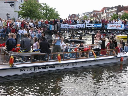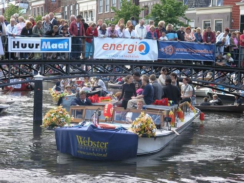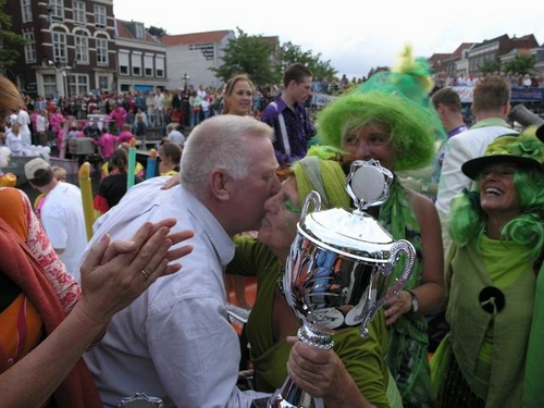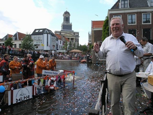 Regen was er voorspeld. Vooral in de avond zou de kans groot zijn, maar het kaarsje dat Aad van der Luit traditioneel aansteekt op de vooravond van de Peurbakkentocht heeft zijn werk gedaan en dus bleef het droog. In de stralende zon trokken de tientallen peurbakken door het centrum van Leiden en natuurlijk ook, of vooral, langs de jury die onder het voorzitterschap van loco-burgemeester Ron Hillebrand de deelnemers beoordeelden vanaf het podium bij Annie’s Verjaardag.