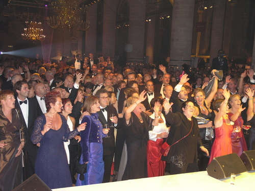 Voor de 15e keer is vrijdagavond het Haring- en Corenwijngala gehouden in de Pieterskerk. Honderden kopstukken uit het bedrijfsleven, de politiek en de culturele sector vermaakten zich de hele avond opperbest in de afgeladen kerk. Iniatiefnemer Menno Smitsloo kan terugkijken op een zeer geslaagde Internationale Herdenking van Leidens Ontzet met onder meer een modeshow met ontwerpen van Sheila de Vries, Edgar Vos, Ermy van Reijmersdal, Rodrigo Otazu en Frank Govers. Muziek was er ook volop met optredens van de Young Sinatra's, Saskia Laroo en als klap op de vuurpijl Lee Towers.
