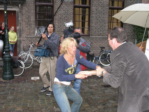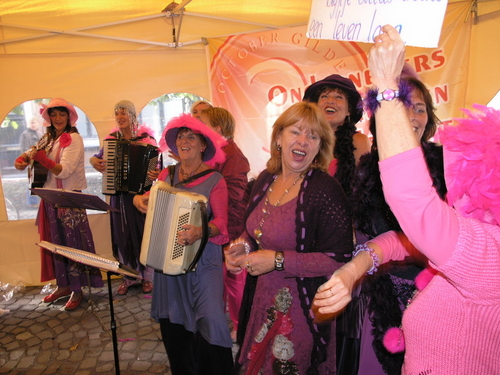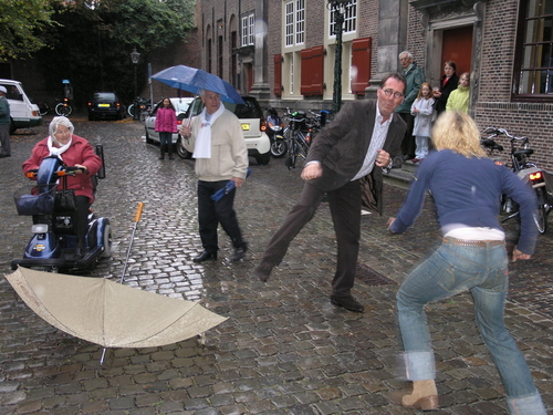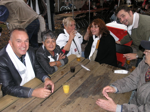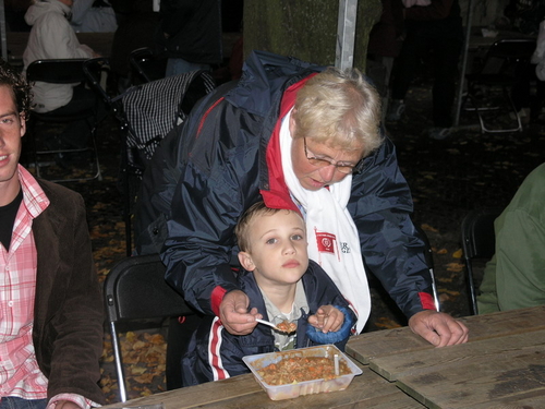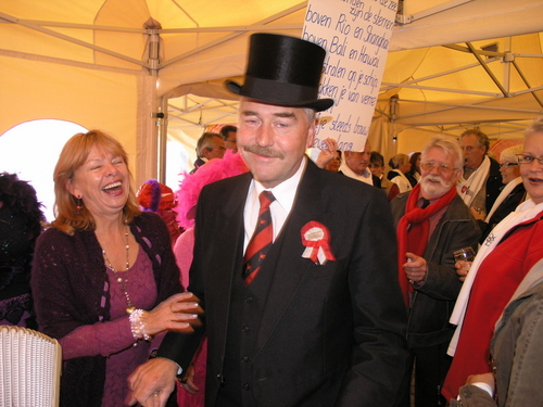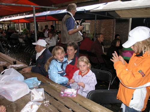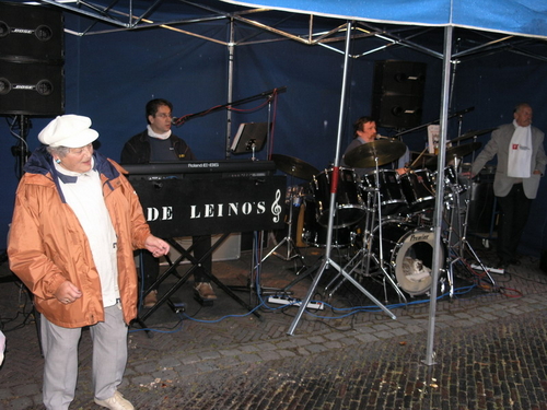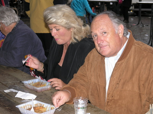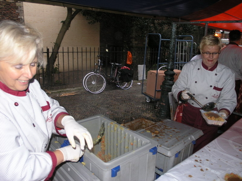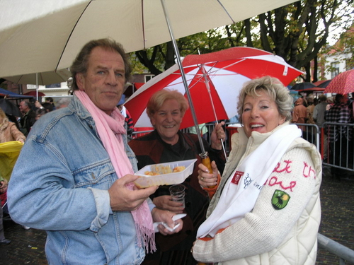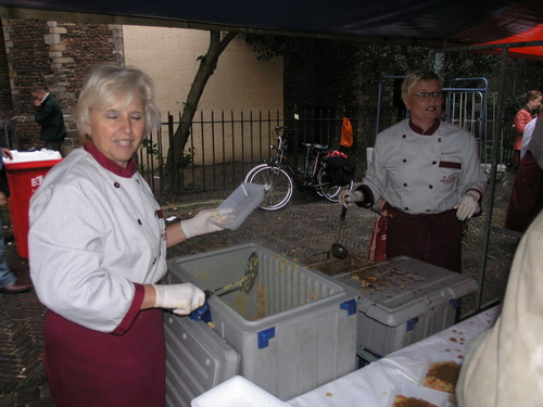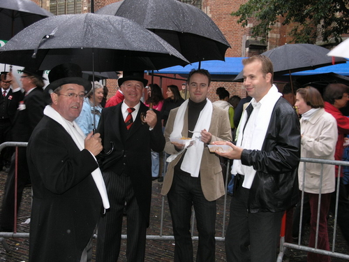 Zoals gewoonlijk was het, ondanks een enkel buitje, weer afgeladen op het Pieterskerkplein, waar jong en oud zich tegoed deed aan een gratis maaltje hutspot. De muziek werd verzorgd door de Leino’s.