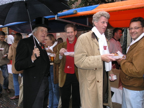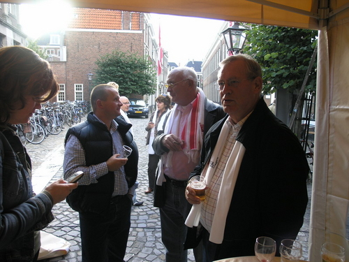 Zaterdagmiddag kwamen de leden van het 3 oktobergilde, ondernemers uit Leiden en omgeving die de 3 October Vereeniging een warm hart toedragen, bij elkaar in een feesttent op het Gerecht. Aansluitend werd op het Pieterskerkplein hutspot gegeten. Hutspot die het gilde overigens sinds enige jaren betaald voor de 3 October Vereeniging, die daardoor geld overhoudt voor andere evenementen.