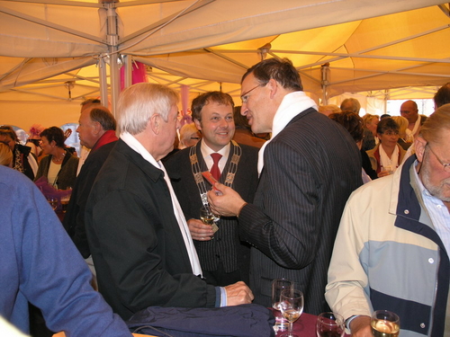 Burgemeester Lenferink in gesprek met Ton Geenjaar (rechts), voorzitter van het 3 oktobergilde. (Foto's: Chris de Waard).