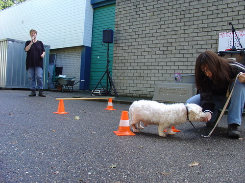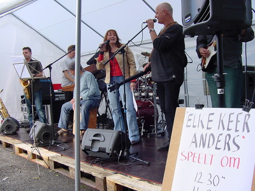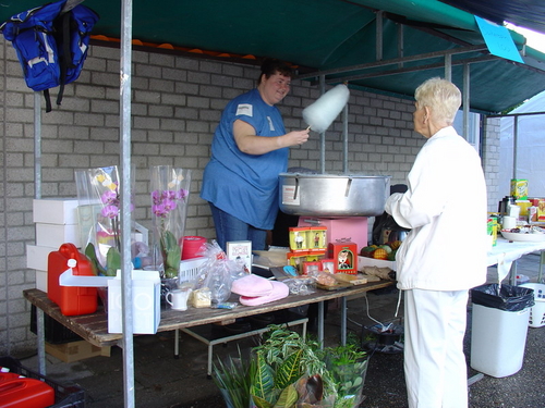 Oud-burgemeester Cees Goekoop is sinds een tijdje voorzitter van het dierenasiel. Hij kwam zaterdag ook een kijkje nemen. Hier praat hij met de vrijwilligers die de donateursstand bemensen. (Foto's: Henk Kamphorst en Willy Salemink).