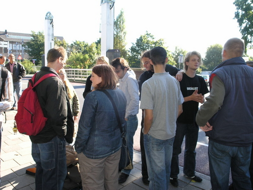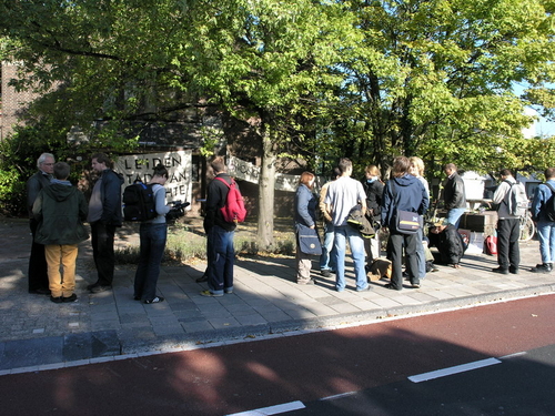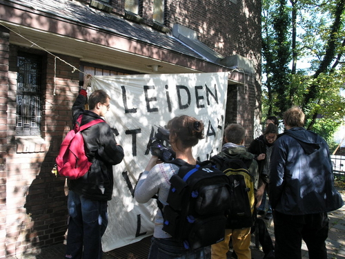 Afgelopen avond heeft de politie de gekraakte Leonarduskerk ontruimd. De krakers rekenden erop dat de ontruiming al rond 12.00 uur s’ middgas zou plaatsvinden en hadden sympathisanten opgeroepen om naar de kerk aan de Haagweg te komen. Zo’n 25 actievoerders gaven aan die oproep gehoor. Toen de politie rond 12.30 uur nog in geen velden of wegen te bekennen was, togen de leden van de initiatiefgroep naar het stadhuis om uitleg van burgemeester Lenferink te krijgen. Om 16.30 uur kregen ze hun zin en werd een delegatie door de burgemeester ontvangen.
