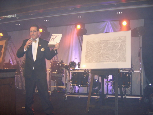 Zaterdagavond maakte Chris Verplancke. voorzitter van de Stichting Rembrandt Gala, in Huis ter Duin in Noordwijk bekend dat het pleintje voor het voormalige geboortehuis van Rembrandt wordt omgedoopt tot Rembrandt Plaats. Het pleintje heet nu nog Weddesteegplein en zal een ware metamorfose ondergaan. Niet alleen krijgt het een nieuwe naam en wordt het heringericht, ook komt er een kunstwerk van de vermaarde Duitse kunstenaar Stephan Balkenhol. Het kunstwerk wordt een eerbetoon aan de 'Jonge Rembrandt'. Het Rembrandt Gala werd zaterdagavond voor de vierde keer gehouden. In 2006 vindt de vijfde en laatste editie plaats, dan in de Pieterskerk. (Foto's: Chris de Waard).