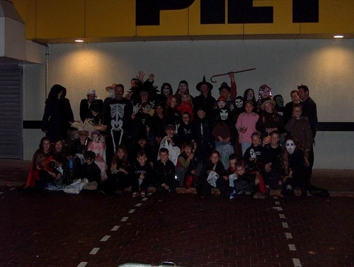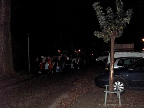 Vorige week werd in de Leidse wijk Groenoord Halloween gevierd. De avond begon om 19:30 op het parkeerterrein bij Piet Kerkhof. Hier kwamen alle kinderen om te verzamelen. Zowel de kinderen als de buurtbewoners waren heel enthousiast over de Hallloween-viering. Buurtbewoners waar de kinderen konden aanbellen hadden een kaars voor hun raam gezet.