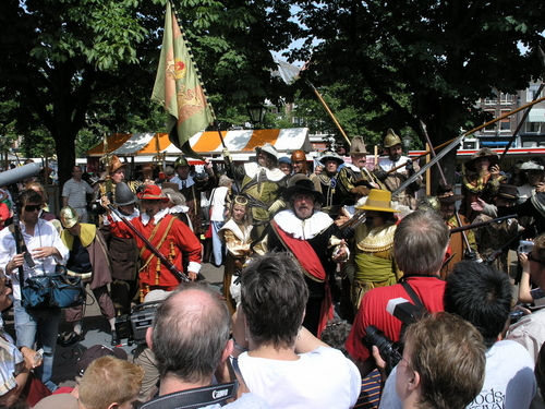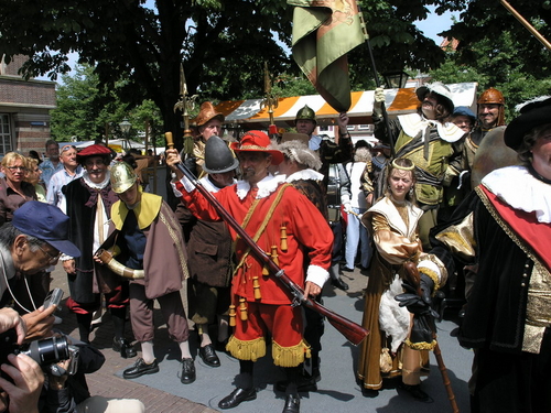 De levende Nachtwacht is één van de bezienswaardigheden tijdens het Rembrandtfestival. (Foto's juli 2005: Chris de Waard).