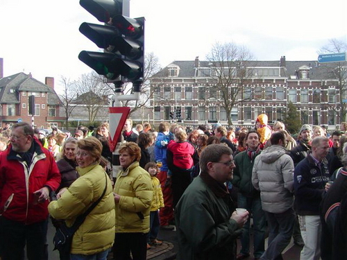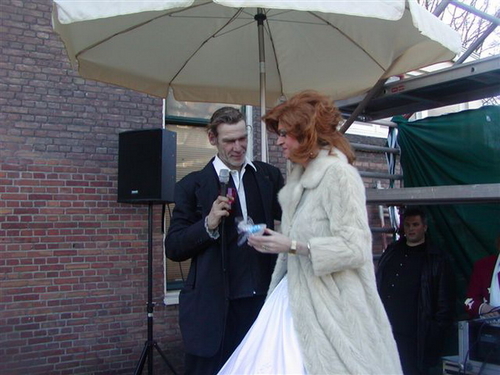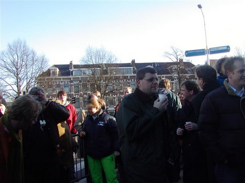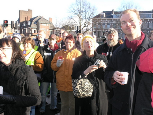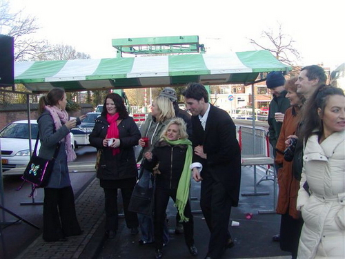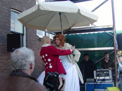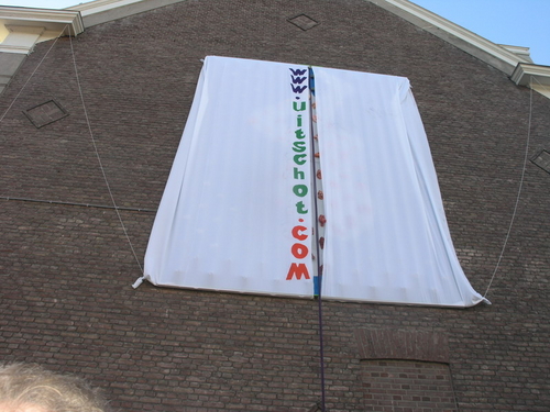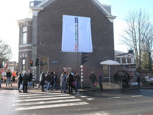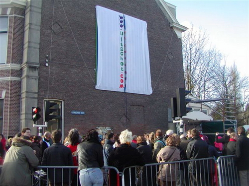 “De tegenstander van weleer: de gemeente, heeft ten behoeve van de happening een heuse wegafzetting met omleiding geregeld,” zo laten de tegendraadse kunstenaars triomfantelijk weten. Na de onthulling, verzorgd door de Leidse drag-queen Christine Carrington, waren er verschillende Leidse optredens. Onder meer van Leidse Kees, Wim Beij en Mark Rijsbergen.