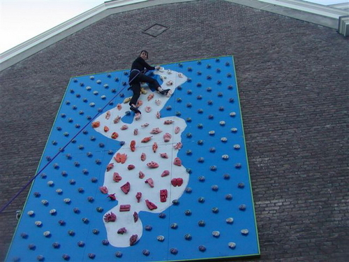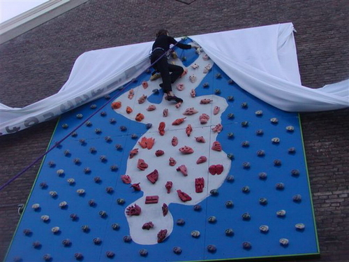 De handgrepen op de klimwand zijn afdrukken van de handen van opvallende stadsgenoten. Van de burgemeester tot de zwerver, de hoer en de pastoor, de politie-agent en de crimineel, de gek en de geleerde, de minister en de travestiet. Omhoog klimmen terwijl je stadsgenoten je letterlijk een handje helpen. Met de 55 afdrukken hebben de kunstenaars een zo breed mogelijk beeld van de stad willen geven. Het beeld van de samenleving in een middelgrote Nederlandse stad aan het begin van het 3e millenium.